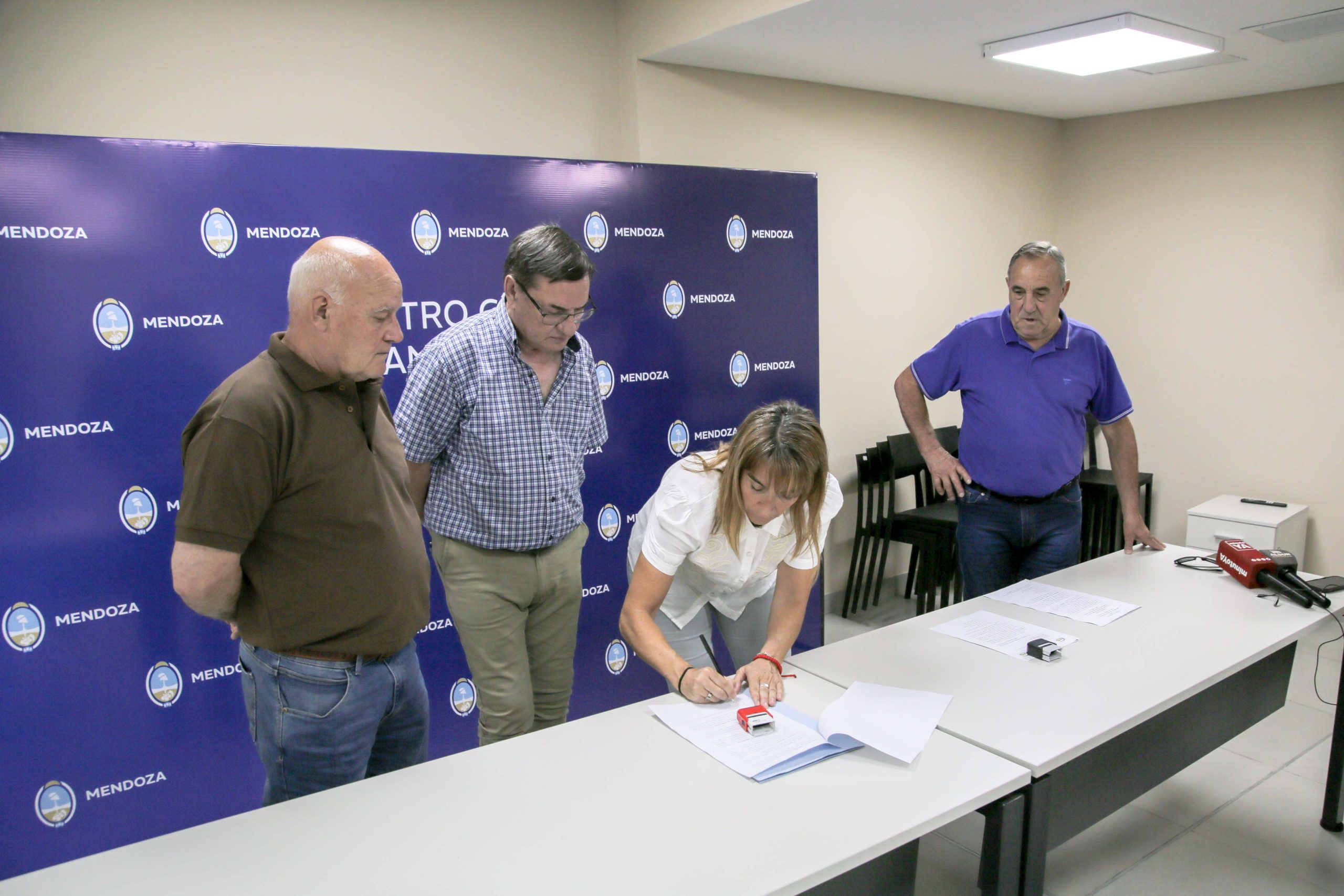 La firma, que se desarrolló en el Centro Cívico Cora Teijeiro, contó con la presencia de la delegada de la regional Sur, María José Sanz, y el presidente de la Cooperativa Eléctrica Monte Comán, Carlos Maunas junto a su vicepresidente, Santiago Martínez.