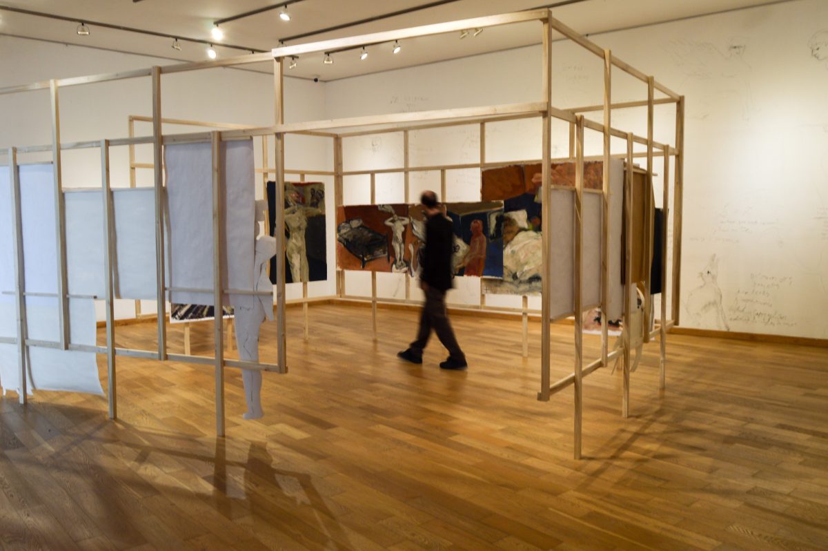 La muestra presenta una serie de obras que exploran la relación entre pintura, cuerpo y memoria. A través de distintos formatos, la artista construye un recorrido donde las piezas dialogan entre sí y conforman una experiencia continua.