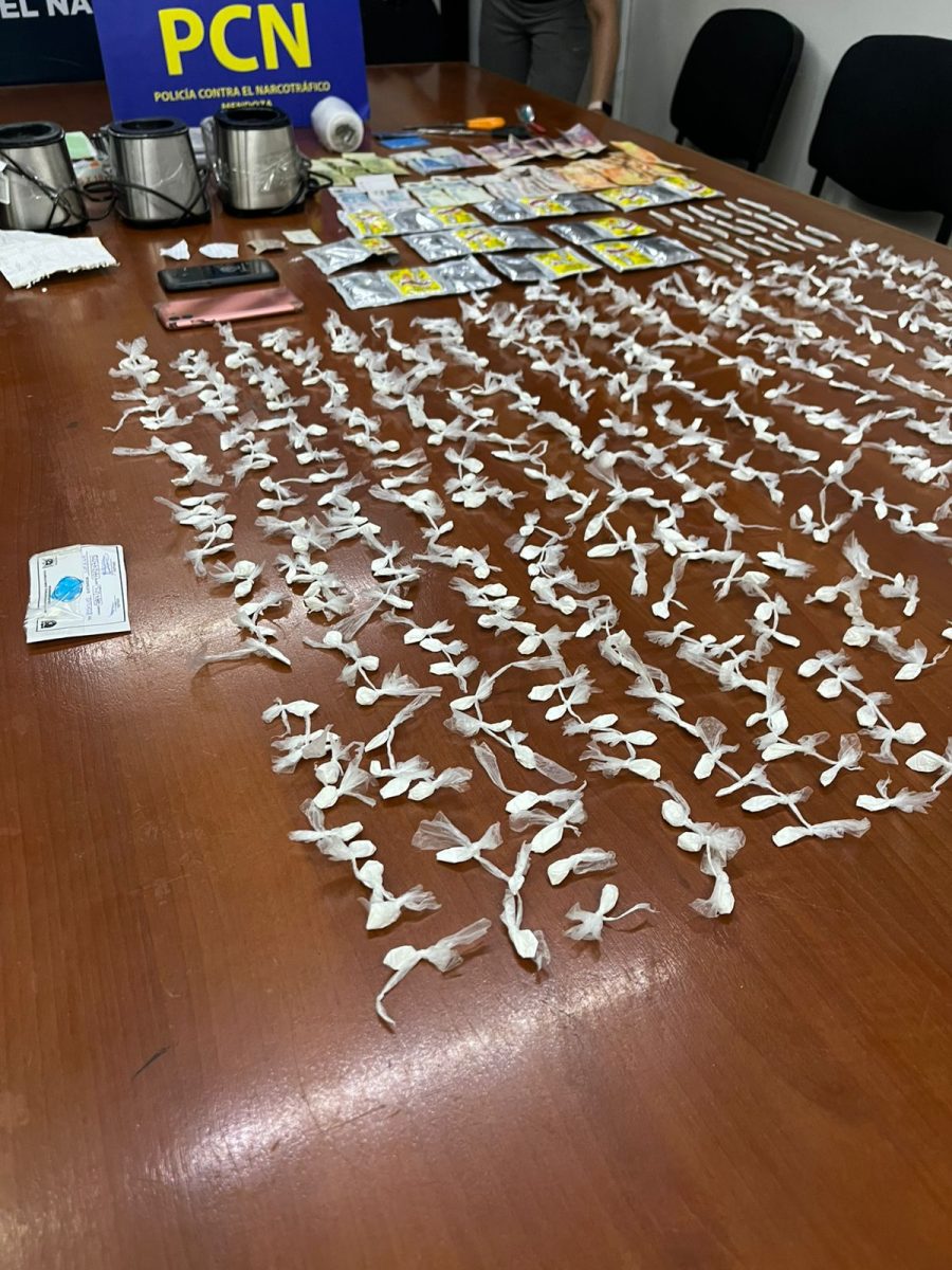 En el primer procedimiento se incautaron 561 envoltorios de nylon con cocaína en polvo, 19 cigarrillos de armado artesanal con marihuana —con un peso total de 10 gramos—, $105.200 en efectivo, 24 paquetes de bicarbonato de sodio, dos teléfonos celulares y anotaciones de interés para la causa.