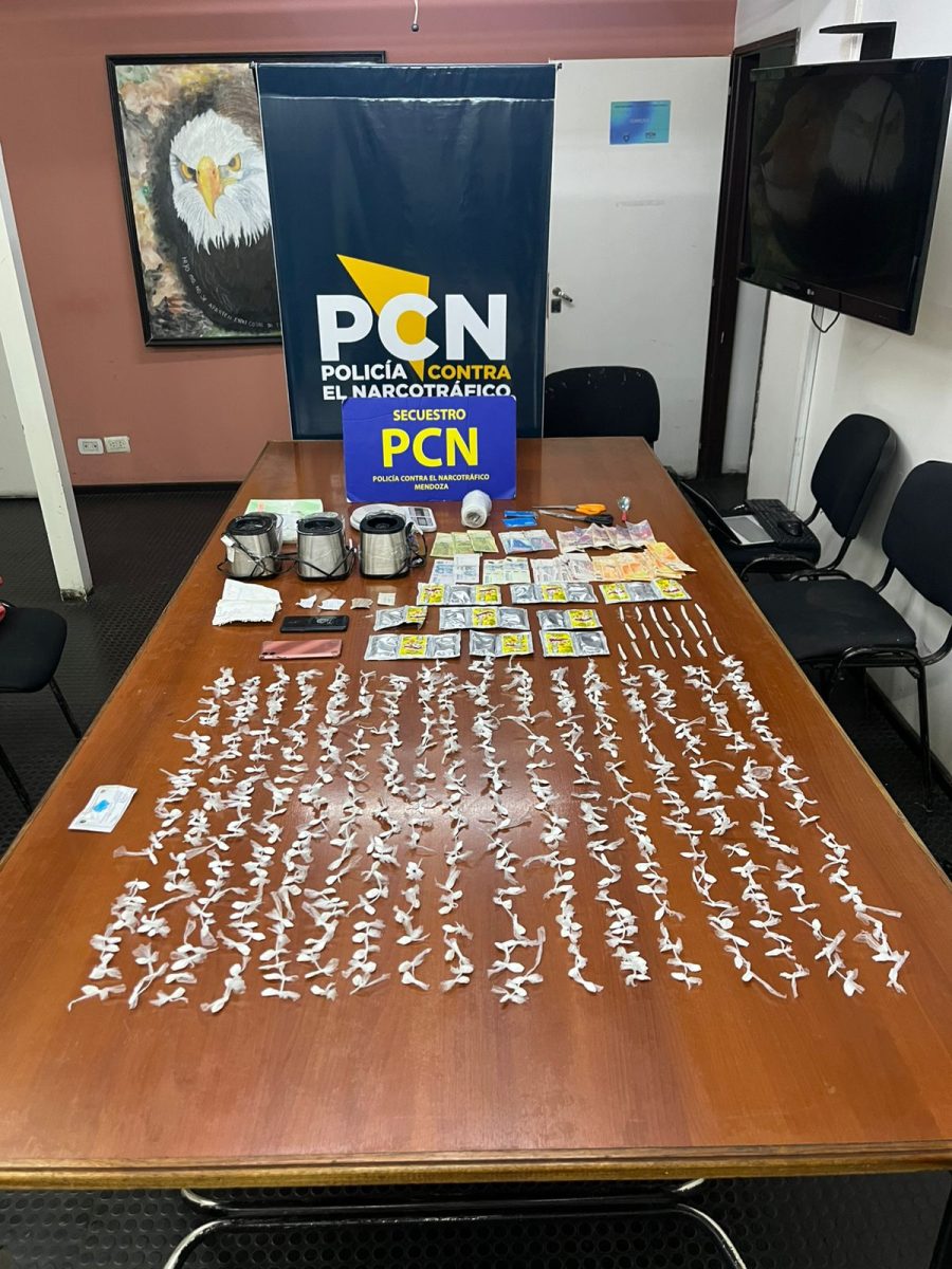 La Policía de Mendoza, a través de la Dirección de Lucha contra el Narcotráfico (PCN), llevó adelante dos allanamientos en el barrio Campo Papa, departamento de Godoy Cruz, en el marco de una causa por comercialización de estupefacientes. Como resultado, se secuestraron 561 envoltorios de cocaína, marihuana fraccionada, dinero en efectivo y diversos elementos utilizados para el procesamiento y fraccionamiento de droga.