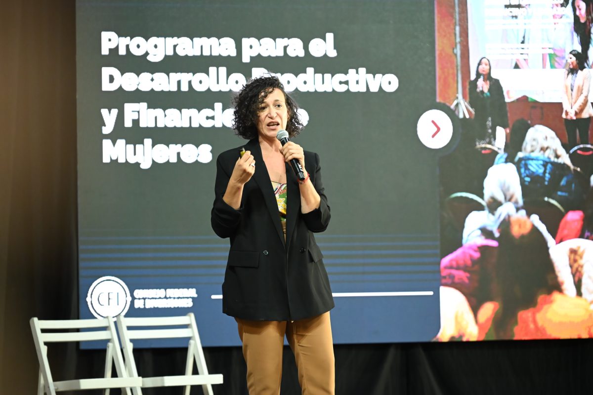 Durante el encuentro, Marcela Garavano, jefa de asesores de CFI, presentó el Programa para el Desarrollo Productivo y Financiero de Mujeres, una iniciativa integral que acompaña el crecimiento de proyectos liderados por mujeres en todo el país.