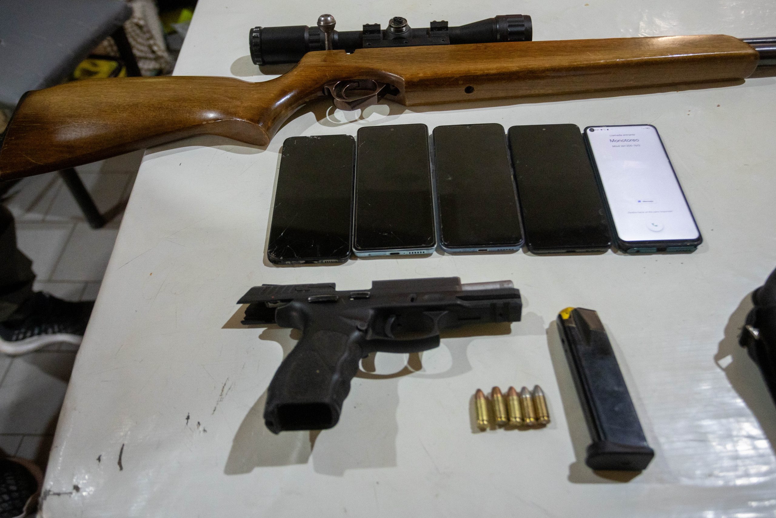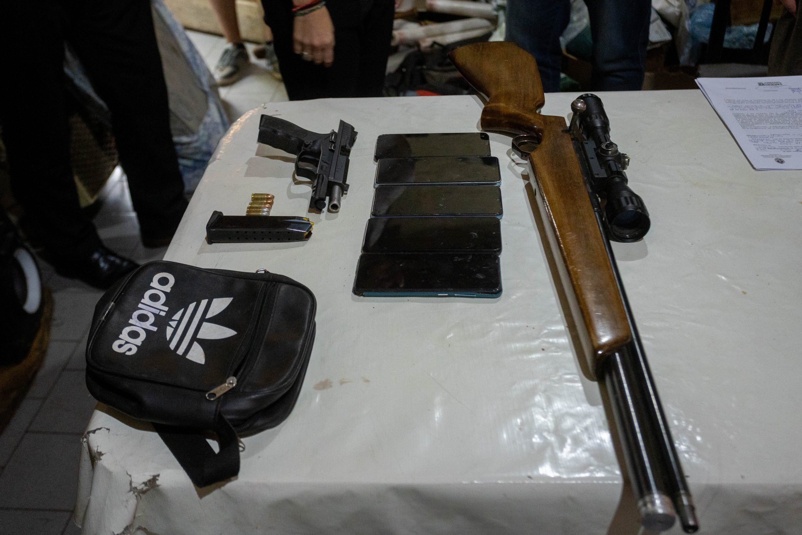 El volumen de armamento incautado fue uno de los datos más relevantes. En los domicilios allanados se secuestraron pistolas 9 milímetros, una pistola calibre 11.25 con cargadores completos, un revólver calibre 32 con cartucho colocado, rifles calibre 22, además de armas de aire comprimido y un arma tipo airsoft. Varias de estas armas estaban en condiciones de ser utilizadas.