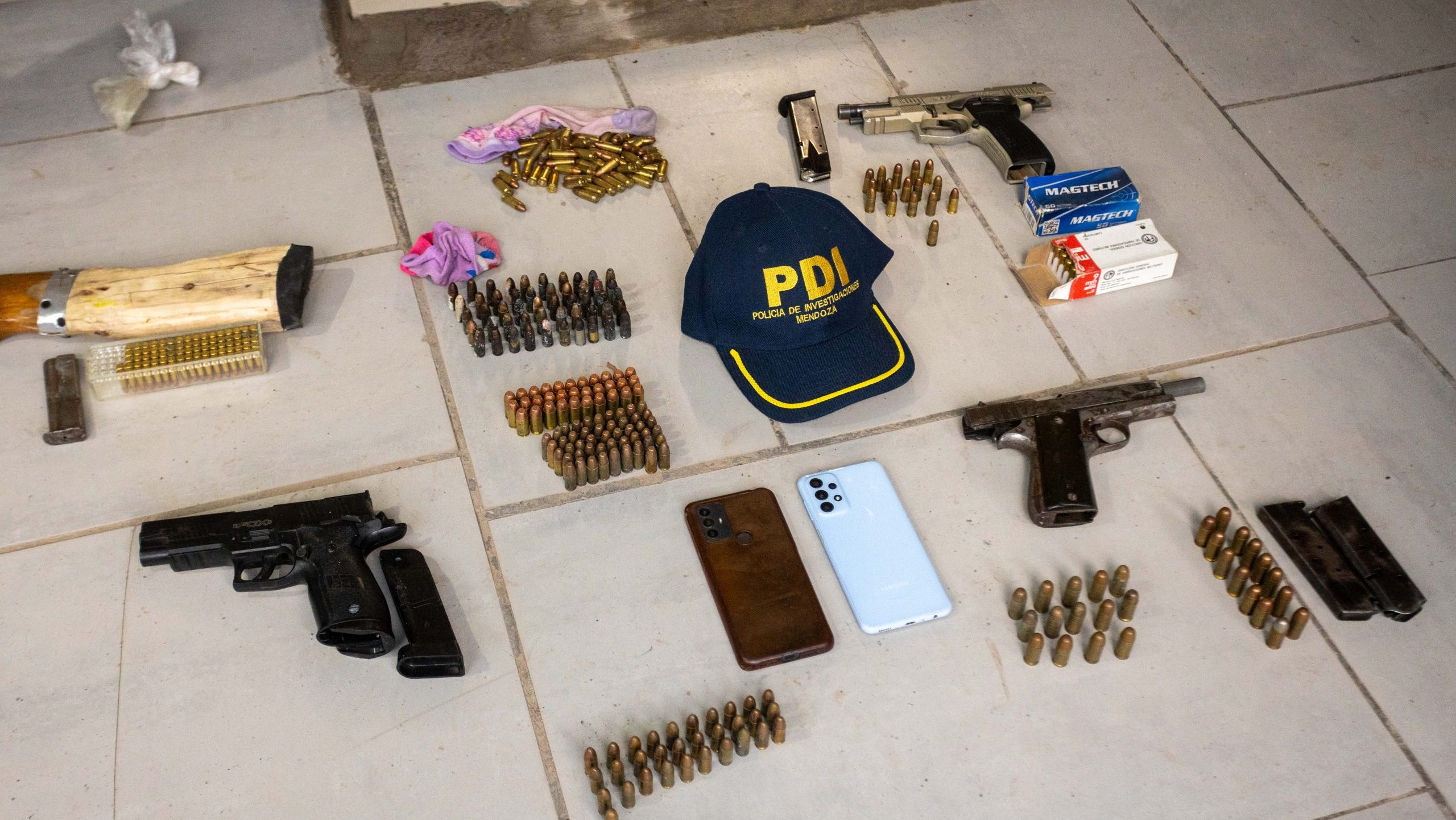 Junto con las armas se hallaron numerosos cargadores y peines completos —algunos en cajas cerradas y selladas— y una cantidad de proyectiles que en total alcanza casi medio millar de municiones. Entre ellas había cartuchos calibre 9 milímetros, 22 largo y municiones de punta chata distribuidas en distintos domicilios y almacenadas junto al armamento.