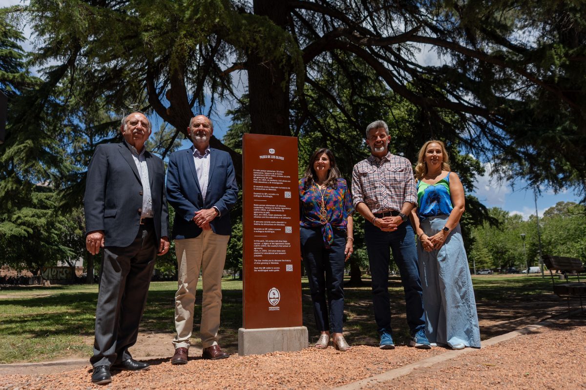 Al mediodía, en la fuente del Parque Cívico, se inauguró el Paseo de los Olivos, que consiste en la puesta en valor de un espacio interpretativo ubicado en el corazón del Barrio Cívico, donde aún se encuentran 18 olivos centenarios, últimos testigos de esta especia de la antigua Quinta Agronómica de Mendoza, un sitio clave para el origen de la agronomía y la vitivinicultura argentinas.