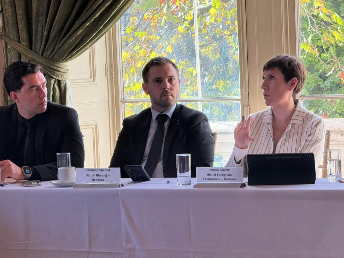 La participación de Mendoza en Resourcing Tomorrow, la feria internacional que reunió en Londres a líderes globales, inversores, gobiernos y empresas del sector minero y de energìas renovables, concluyó con una disertación de la ministra de Energía y Ambiente, Jimena Latorre, en la Residencia Argentina en Londres. Acompañada por el director de Minería, Jerónimo Shantal, y el gerente financiero de Impulsa Mendoza, Sebastián Piña, la ministra abordó el presente y futuro de la minería provincial, la transición energética y las oportunidades que Mendoza ofrece para inversiones vinculadas a los minerales estratégicos.