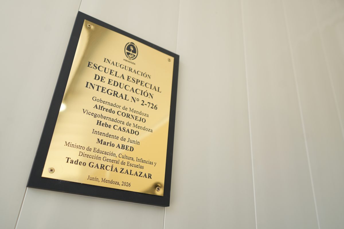 El Gobernador Alfredo Cornejo, junto al ministro de Educación, Cultura, Infancias y DGE, Tadeo García Zalazar, y el intendente de Junín, Mario Abed, inauguró el nuevo establecimiento de la Escuela de Educación Integral 2-276, destinado a la atención de estudiantes con discapacidad motriz e intelectual.