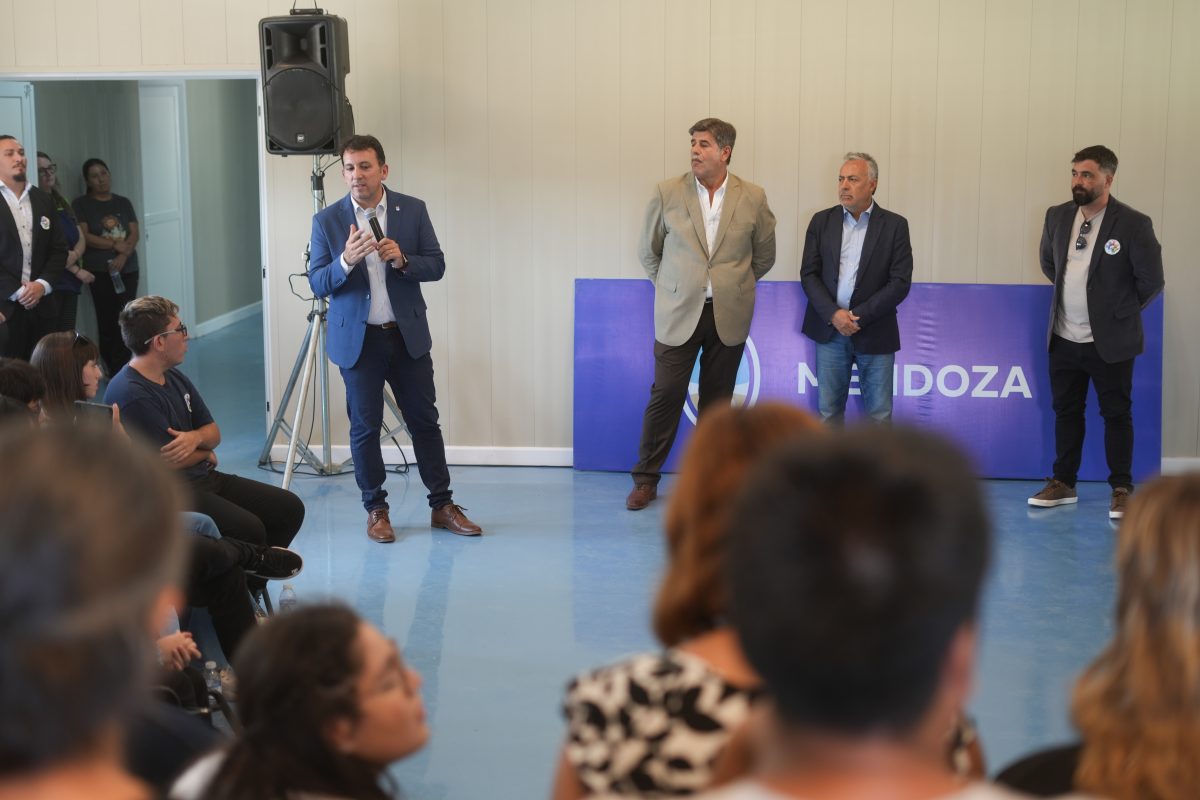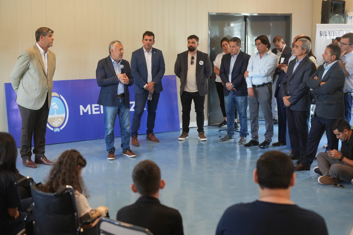 En relación con la nueva infraestructura, indicó que “el sistema constructivo adoptado permite dar respuestas rápidas a demandas concretas” y recordó que históricamente la provincia mantenía una deuda en materia de infraestructura para educación especial. Afirmó que “esa deuda se está saldando con nuevos edificios, equipamiento y programas específicos”. Luego mencionó como antecedente el trabajo conjunto con la comunidad de San Rafael para la construcción de una escuela destinada a estudiantes con discapacidad auditiva, experiencia que consideró “modelo para la provincia”.