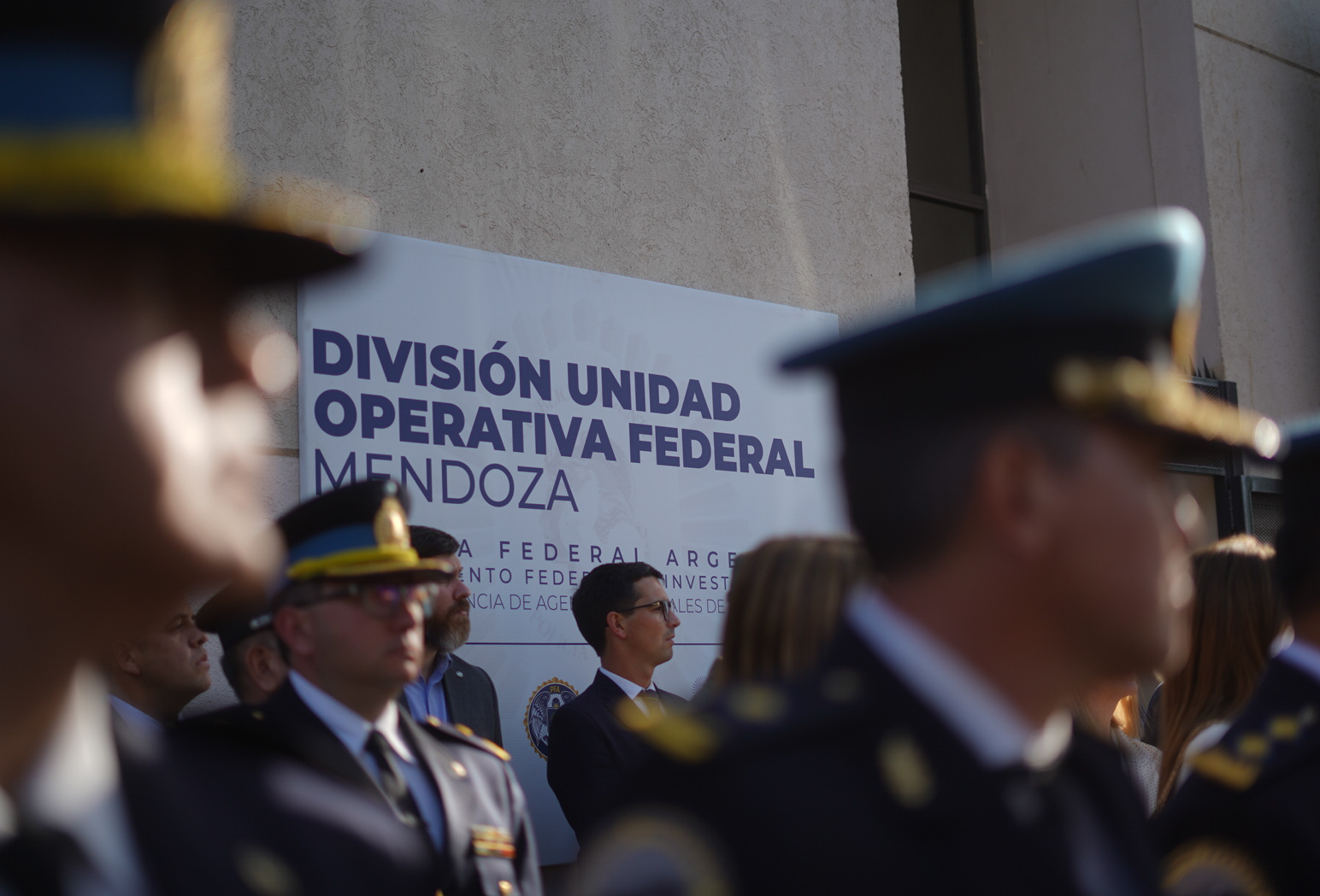 También mencionó las características del flamante edificio donde trabajarán profesionales especializados, formados en universidades, con herramientas modernas y capacidad para anticiparse a las organizaciones criminales. “Este cambio es profundo, y Mendoza es el lugar ideal para consolidarlo, porque aquí la seguridad se gestiona como una verdadera política de Estado”, subrayó.