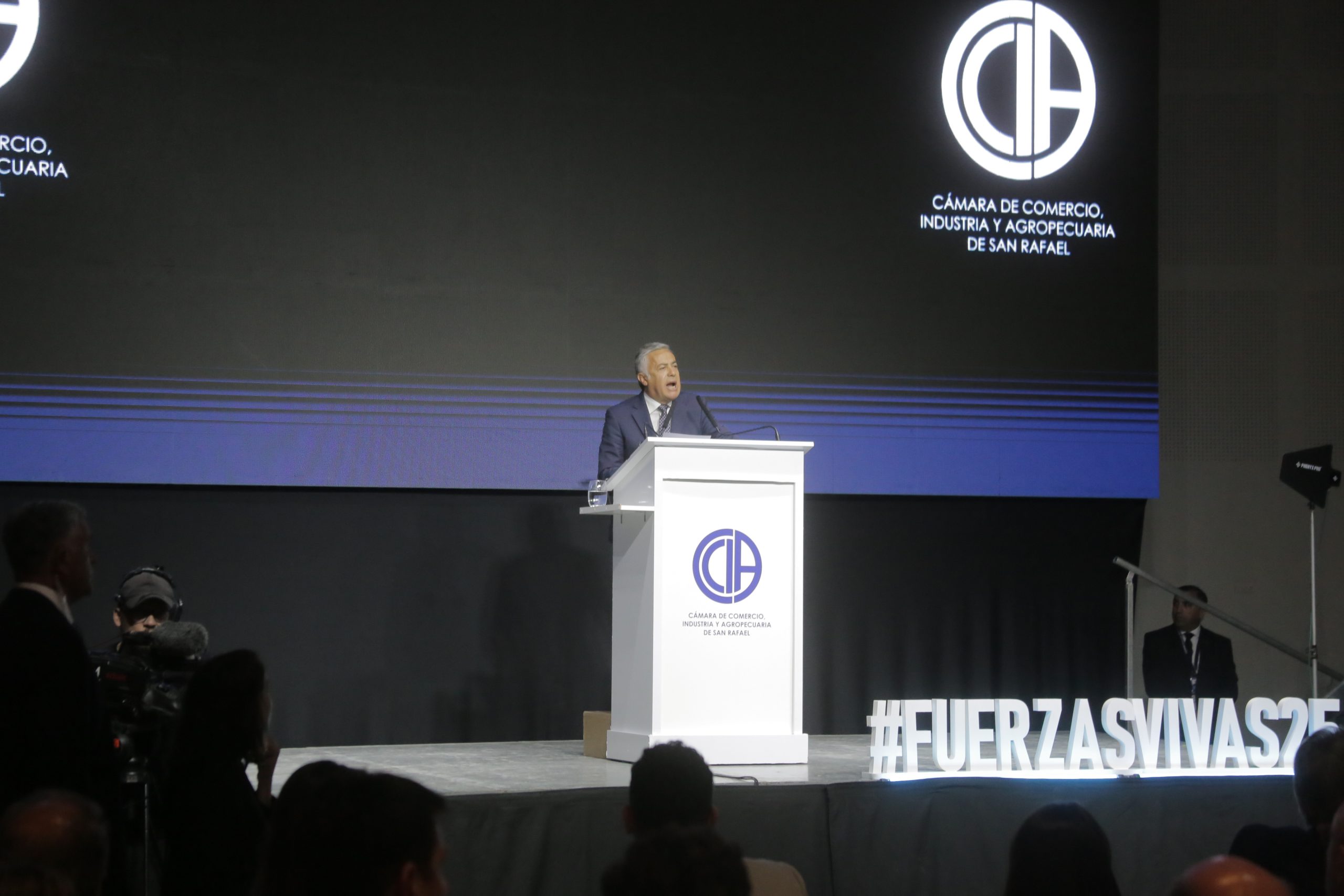 El Gobernador Alfredo Cornejo participó en el tradicional Almuerzo de las Fuerzas Vivas, organizado por la Cámara de Comercio, Industria y Agricultura de San Rafael. El encuentro contó con la presencia del Presidente de la Nación, Javier Milei, autoridades nacionales y provinciales, legisladores, intendentes, empresarios y representantes de instituciones intermedias del Sur mendocino.