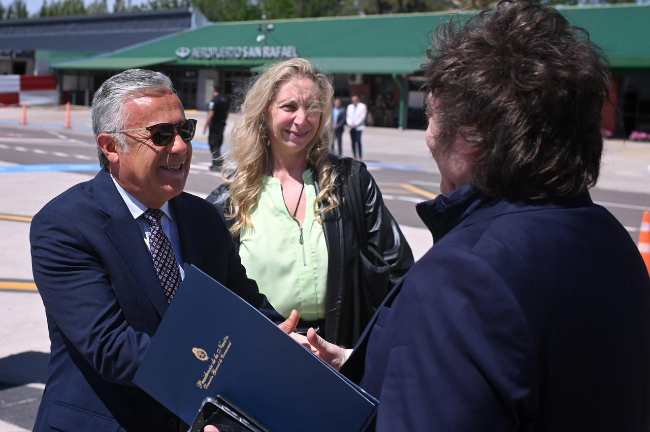 Asimismo, mencionó los avances en energías renovables, con nueve parques solares en funcionamiento, dos de ellos en San Rafael, ubicados en El Sosneado y Agua del Toro. Destacó que “esas inversiones privadas se integran con una política pública que promueve energías limpias, genera empleo y fortalece la matriz productiva con la hidroeléctrica, parques eólicos y solares, dar previsibilidad a la industria y bajar costos a productores y servicios. De manera que allí hay empleo, tecnología de punta e inversión constante en una actividad que tiene mucho por crecer todavía en el Sur”.