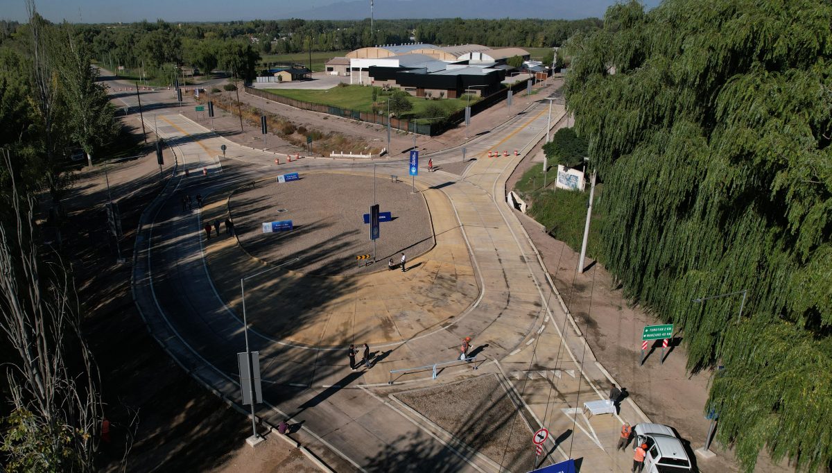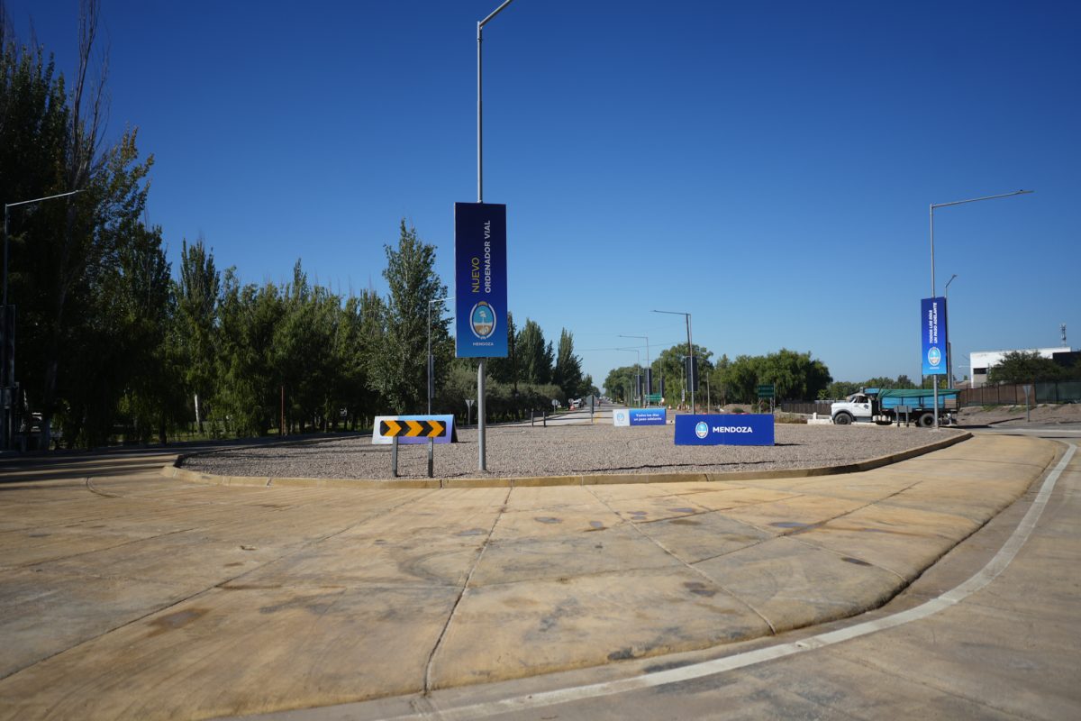 El intercambiador vehicular, construido en el plazo previsto por Vialidad Mendoza, quedó hormigonado, demarcado, con cartelería vial vertical y nueva iluminación LED.