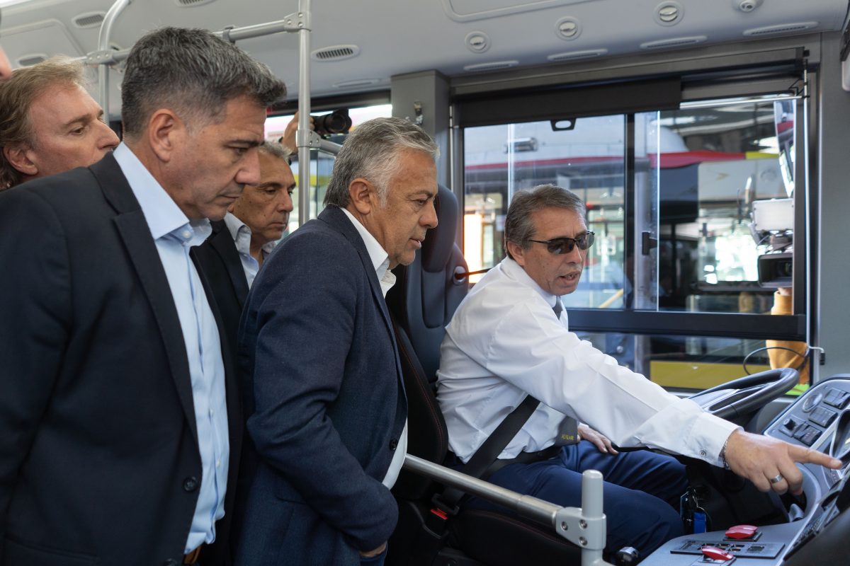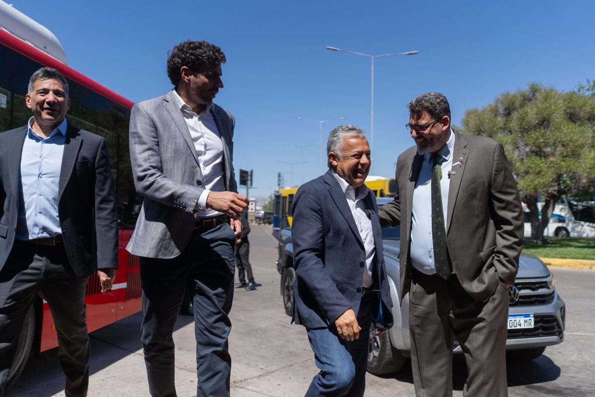 El Gobernador Alfredo Cornejo y el ministro de Gobierno, Infraestructura y Desarrollo Territorial, Natalio Mema, participaron en la presentación de 10 de los 16 colectivos que se suman al sistema MendoTran. Cada vehículo cuenta con capacidad para 27 personas sentadas y un total de 90 pasajeros, además de incorporar cámaras de seguridad internas.