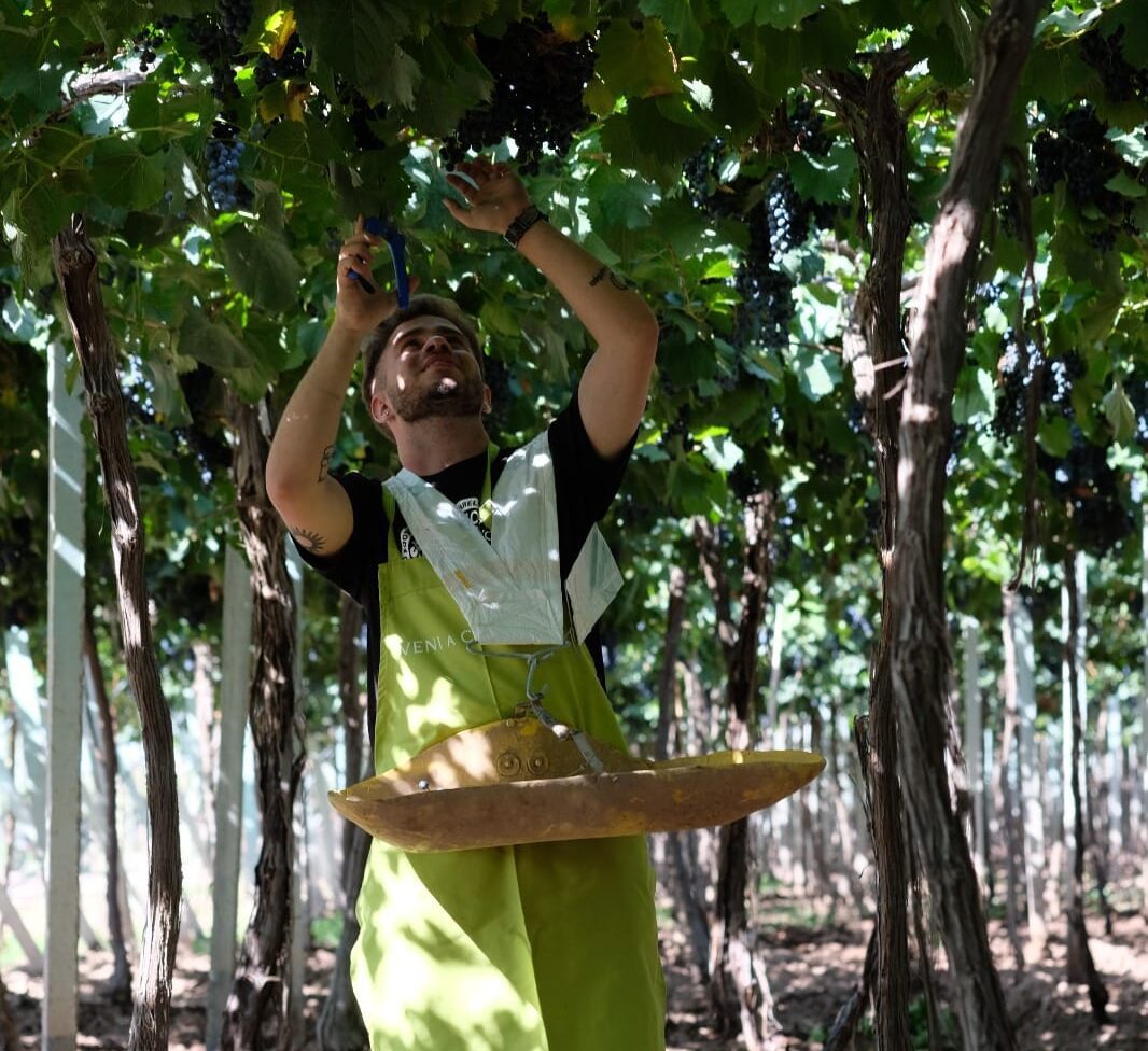 La experiencia comienza a las 9.30 en Casa del Visitante con un desayuno exprés para cargar energía. A las 10 se inicia la actividad junto al guía. Desde allí, el grupo se dirige a los viñedos cercanos, donde comienza la aventura de la cosecha. Con tijeras y bandejas en mano, los participantes se sumergen en el arte de recolectar uvas, guiados por explicaciones sobre el manejo de la finca y las técnicas de recolección. La actividad se realiza bajo la sombra de los viñedos y tiene una duración aproximada de una hora.