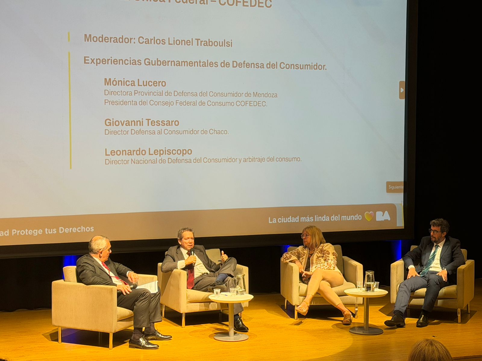 Durante la primera jornada del encuentro, la directora de Defensa del Consumidor de Mendoza, Mónica Lucero, formó parte del panel “Experiencias gubernamentales de defensa del consumidor” y compartió las políticas y acciones que se vienen desarrollando en la provincia, en un espacio de intercambio junto a autoridades nacionales e internacionales del ámbito del consumo.