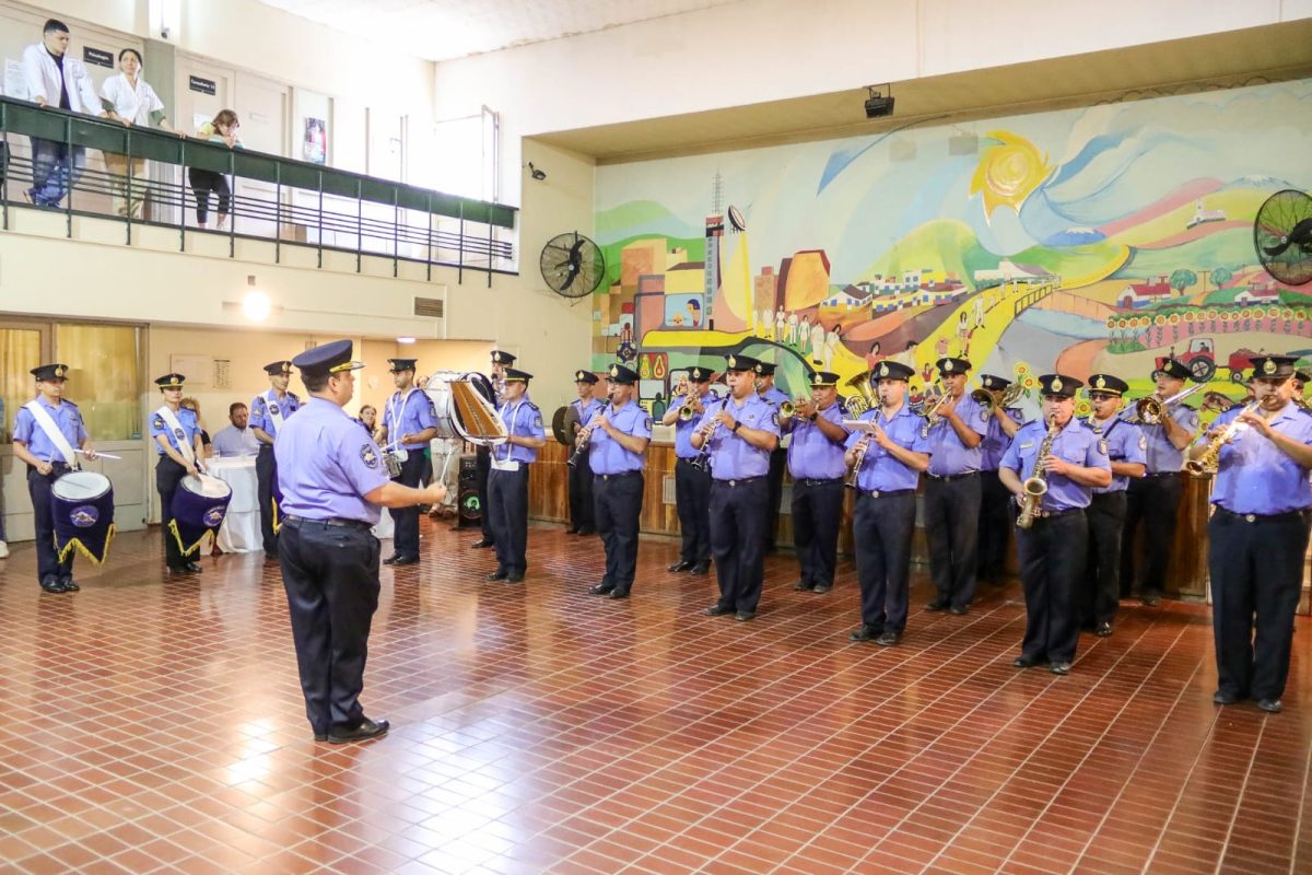 El Himno Nacional Argentino fue interpretado por la Banda de la Policía y por la psicóloga Mercedes Bosch, quien cantó las estrofas de la canción patria. El acto continuó con diversas piezas musicales a cargo de la Banda y, como broche de oro, el tradicional Feliz cumpleaños, acompañando el espíritu festivo de la ocasión.