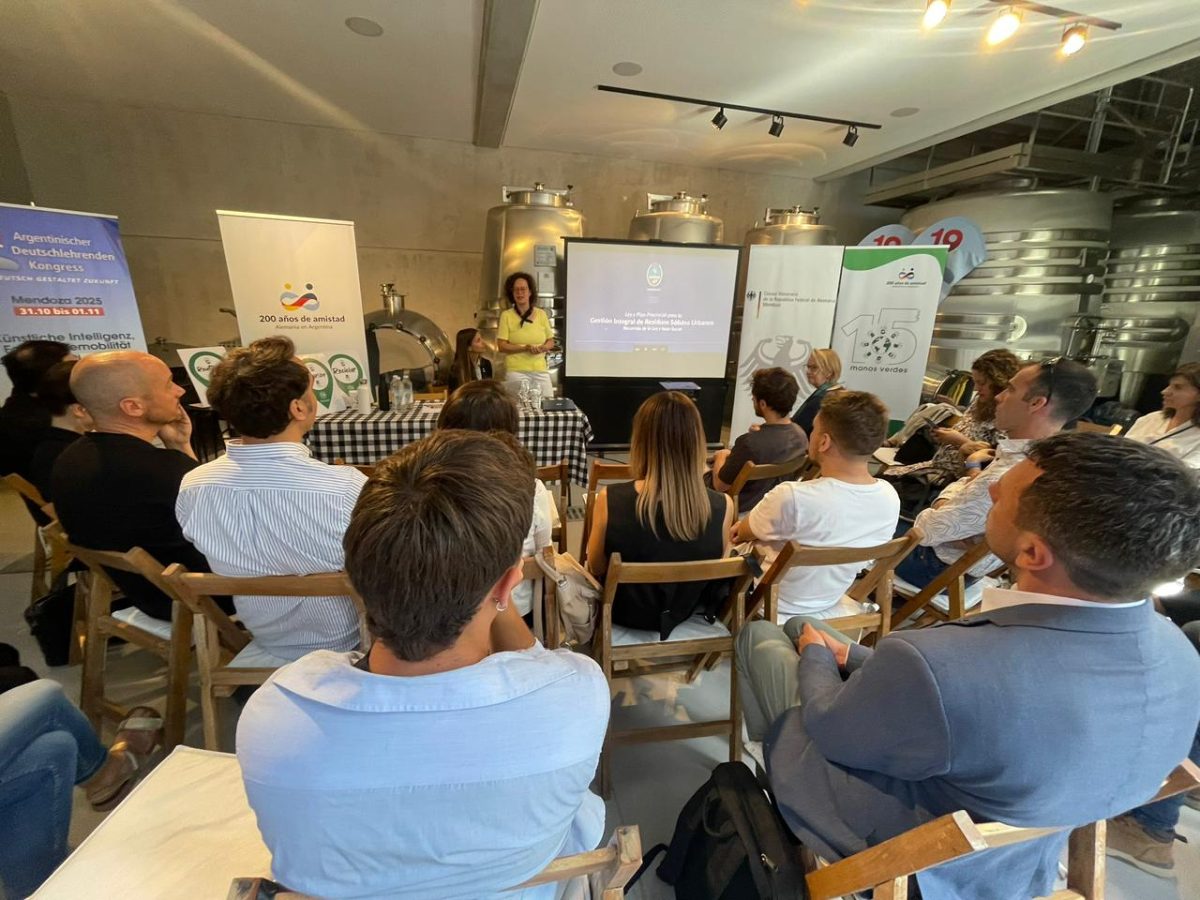 El encuentro contó con la participación de Anja Schwetje, especialista de la Agencia Federal de Medio Ambiente de Alemania, quien brindó una exposición sobre la evolución del modelo alemán de separación, tratamiento y valorización de residuos. Schwetje señaló que cada territorio debe construir soluciones adaptadas a su realidad, y destacó positivamente el bosque urbano mendocino como ejemplo de planificación sostenible en un entorno árido.