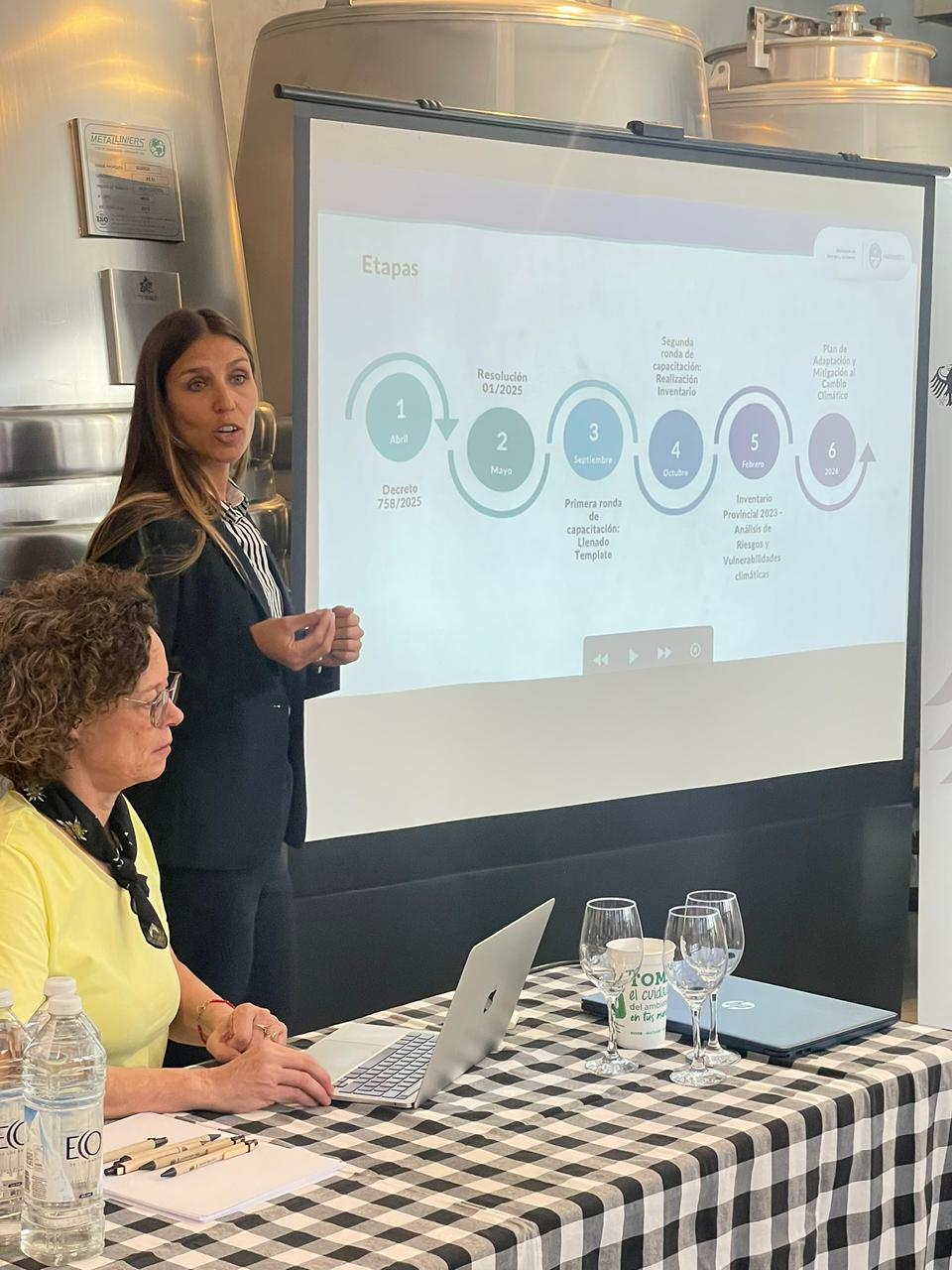 Carla Ortega y Graciela Marty, de la Coordinación de Sostenibilidad, y Marcela Dávila y Jesica Minatel, de la Dirección de Fiscalización y Gestión Ambiental, expusieron las políticas públicas ambientales vigentes en Mendoza, incluyendo la implementación de la Ley de Residuos Sólidos Urbanos, los avances del Programa Provincial de Recuperadores Urbanos, el trabajo territorial con municipios y cooperativas, y las acciones para la reducción y reporte de emisiones de gases de efecto invernadero.
