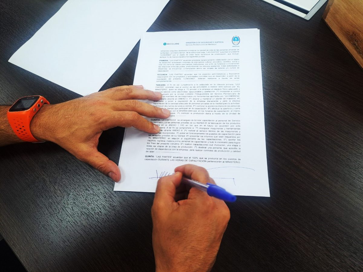 El Servicio Penitenciario de Mendoza (SPM) firmó dos nuevos convenios de colaboración con Novoli SAS y Reciclarg Recycling Technology SA, empresas que se incorporan al programa provincial de formación y trabajo en contexto de encierro.