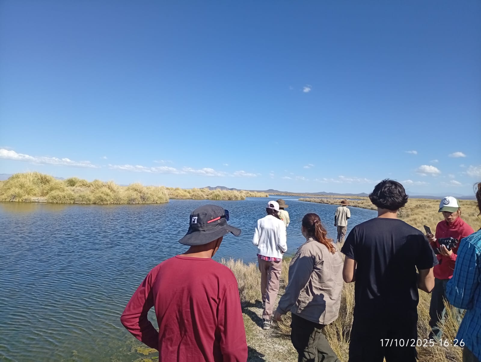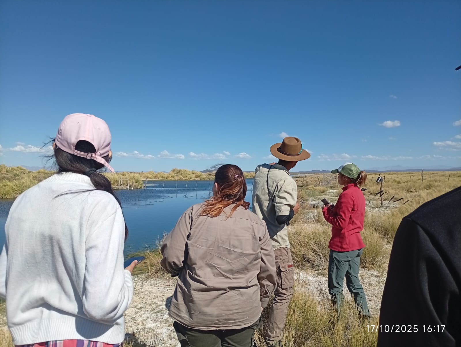 El recorrido incluyó una visita a La Playa de Llancanelo, donde el personal de la Delegación explicó las características ecológicas del humedal, su importancia en la conservación de aves acuáticas y su rol como sitio RAMSAR. Posteriormente, el grupo realizó un trekking hasta Carilahuquen, donde fueron recibidos por el propietario del puesto local, Ángel Lamas, quien brindó acceso a las instalaciones, conectividad y un espacio de descanso, gesto muy valorado por todos los participantes.