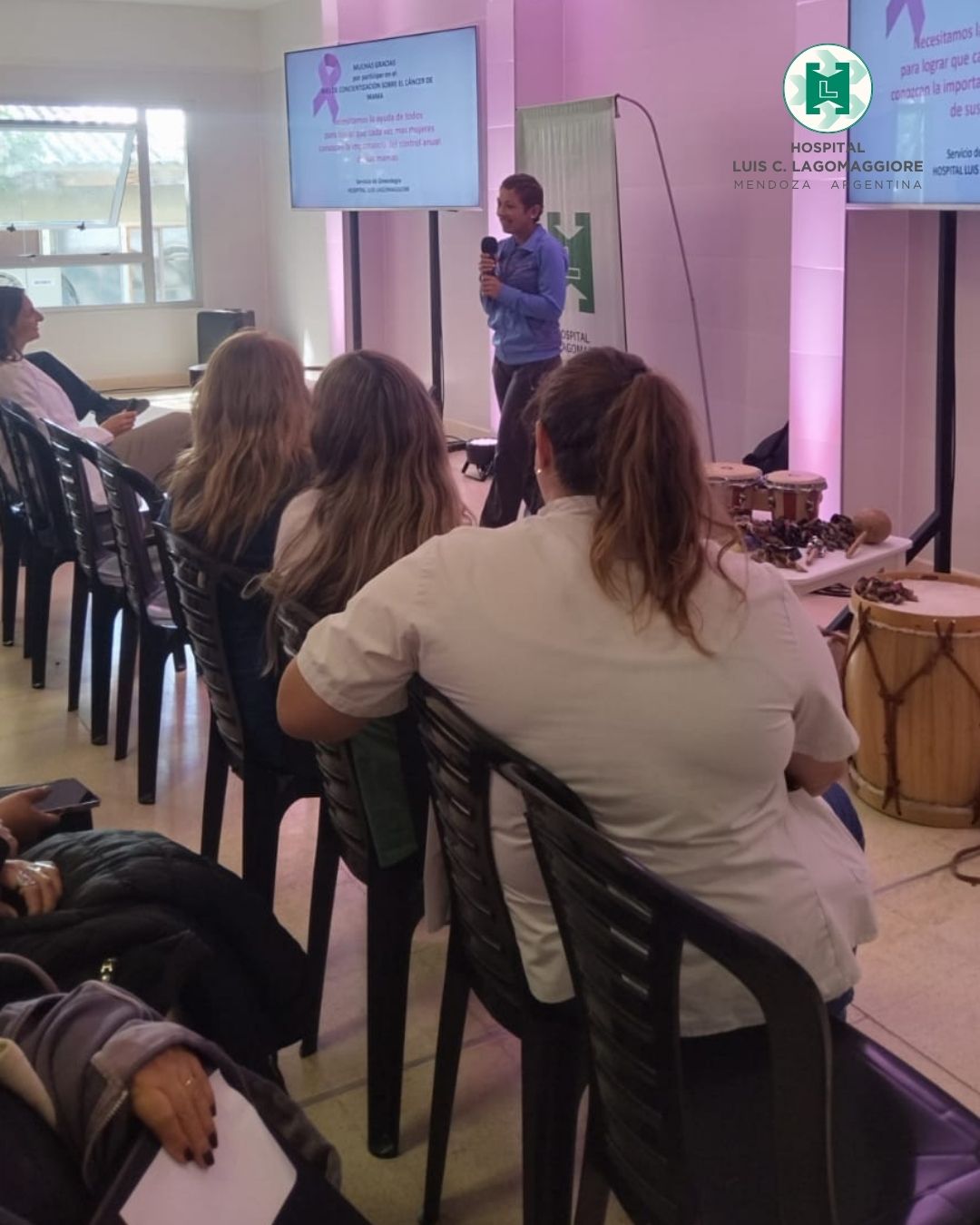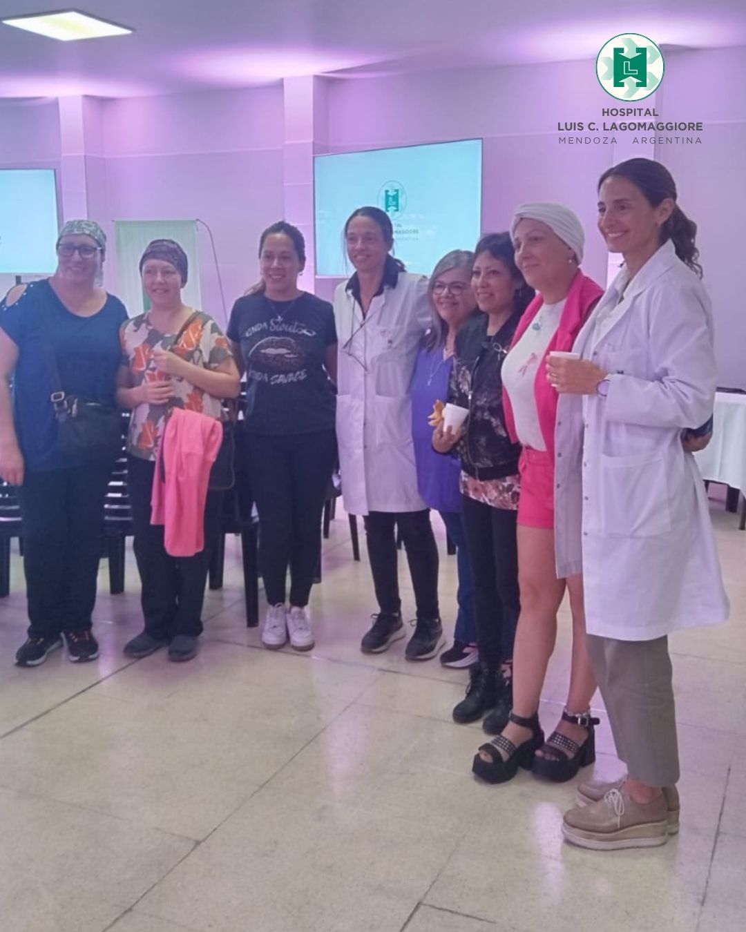 En esa misma línea, el 20 de octubre se realizó un encuentro con pacientes en el SUM del hospital, donde mujeres que atravesaron diferentes etapas del proceso de diagnóstico y tratamiento compartieron sus testimonios junto a profesionales del equipo de salud. La jornada incluyó charlas, intercambio de experiencias y reflexiones sobre el valor del acompañamiento, la contención emocional y el trabajo conjunto entre pacientes y personal de salud.