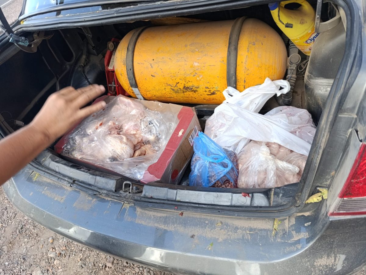 Al inspeccionar el rodado, detectaron varias bolsas con carne, pollo y chorizos, además de otros elementos, y la presencia de gran cantidad de moscas, lo que evidenciaba condiciones inadecuadas de conservación. Ante la consulta, el hombre manifestó que realizaba un reparto de carne.