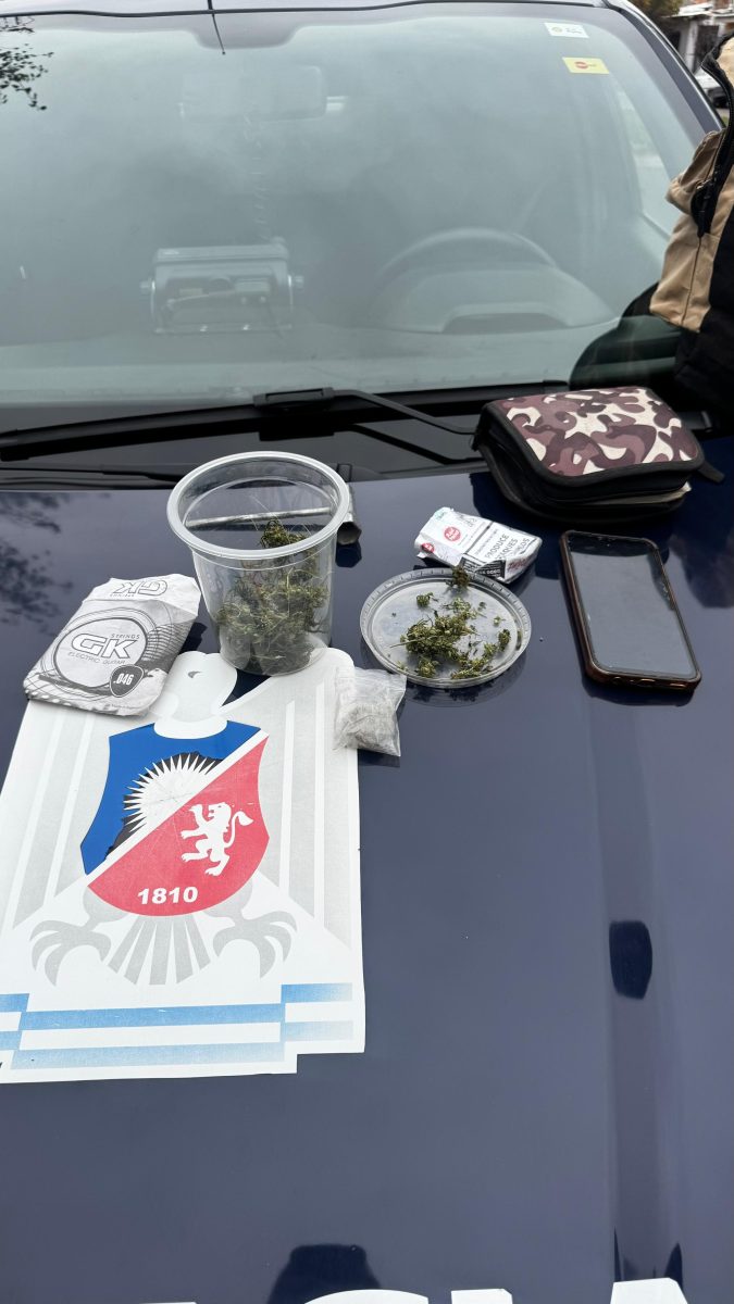 Por otro lado, en calle Nuestra Señora del Carmen, se aprehendió a un hombre que llevaba en su mochila un frasco y una bolsa con sustancia vegetal compatible con marihuana, que fue secuestrada para su análisis.
