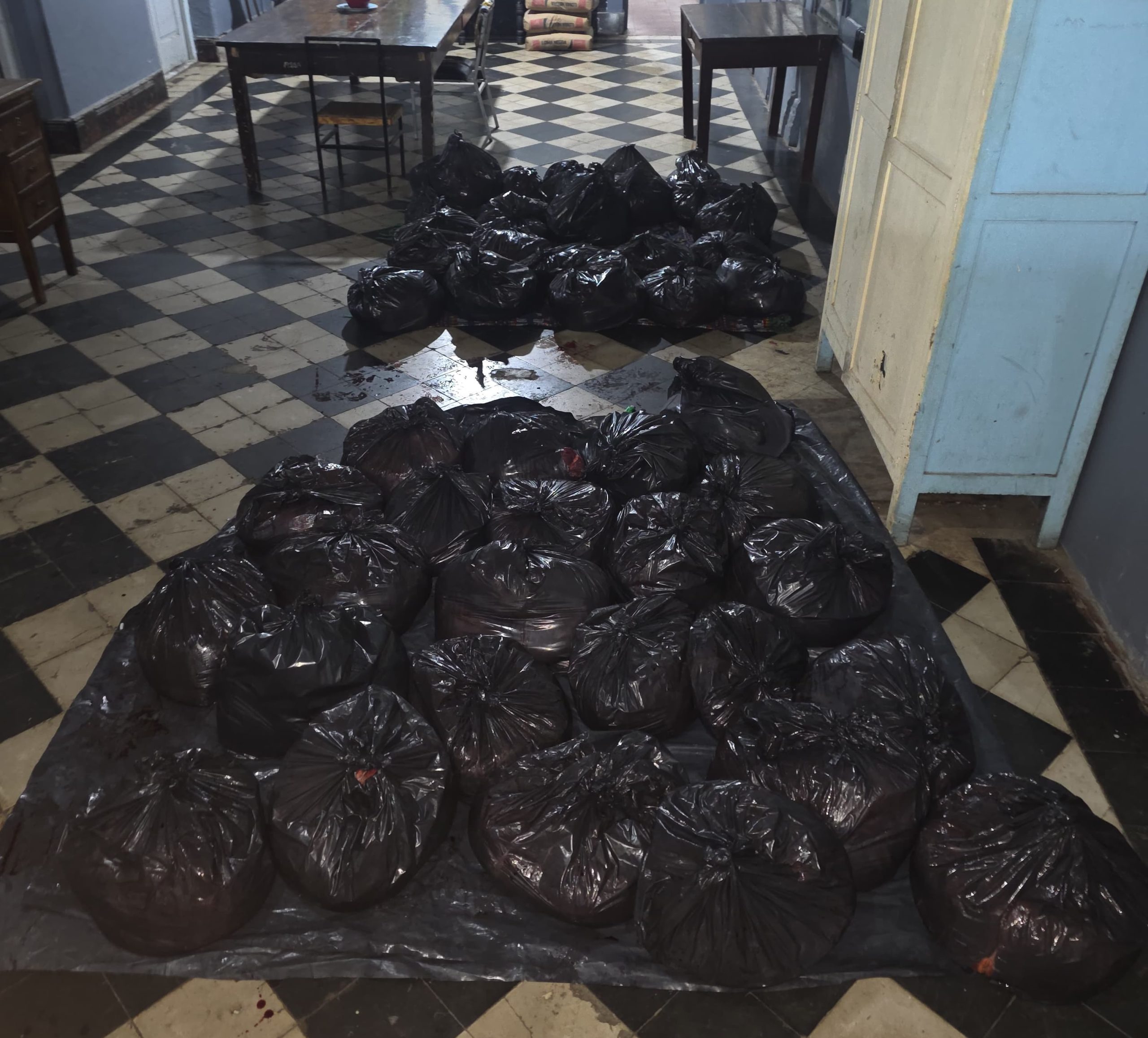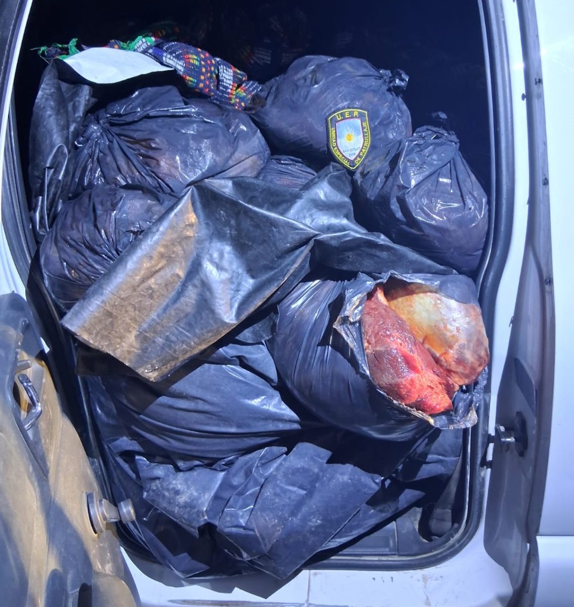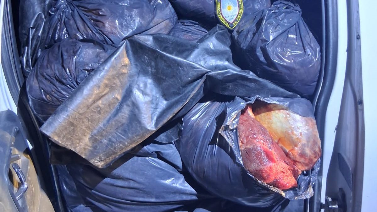 Los policías constataron que los asientos traseros estaban llenos de bolsas negras con carne, algunas frías y otras tibias, y encontraron además un cuero. En total, se trataba de unos 2.000 kilos de productos cárnicos. Ante la evidencia, el ayudante fiscal en turno dispuso la aprehensión de los dos hombres por el artículo 206 del Código Penal.