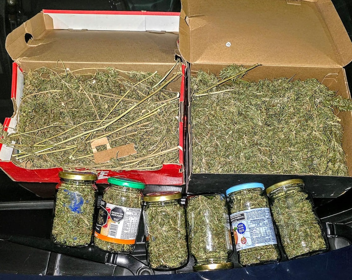 En otro procedimiento, en calle Tacuarí y Defensa, en Guaymallén, un hombre de 28 años fue aprehendido mientras circulaba en motocicleta. Transportaba 2 cajas con 6 frascos de cannabis sativa, con un pesaje total de 790 gramos de cogollos.