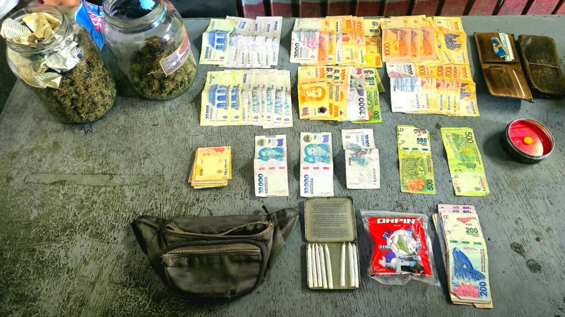 Con la presencia de un testigo hábil, se realizó la inspección correspondiente y se constató un total de 140,5 gramos de cannabis, además de dinero en efectivo.