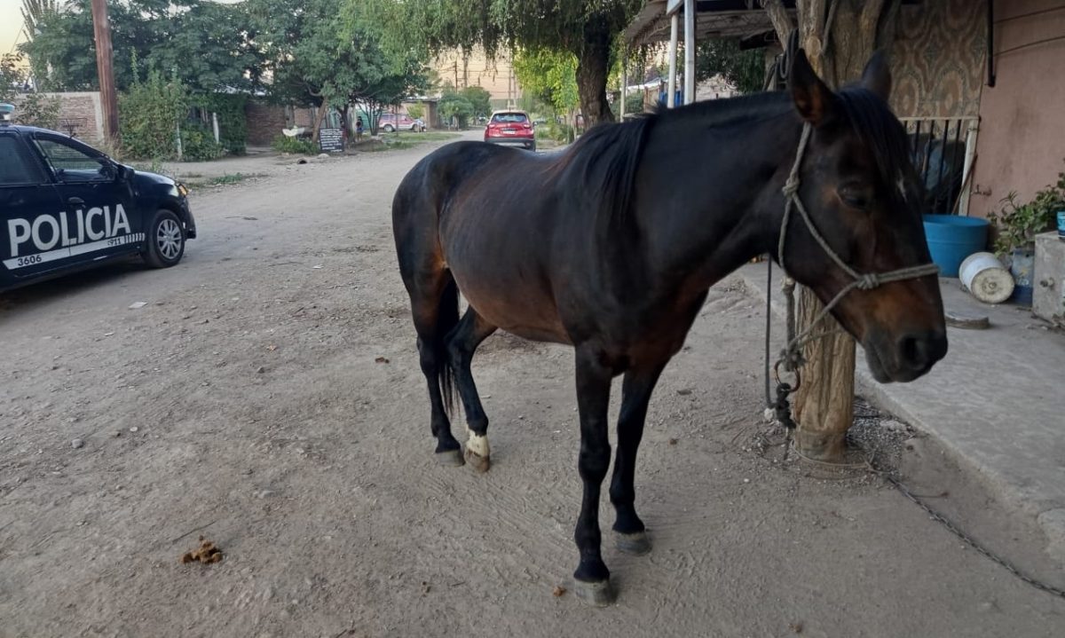 Con esa información, el personal se desplazó al lugar y constató la presencia del equino, que se encontraba atado en la vía pública y coincidía con las características aportadas por la víctima.