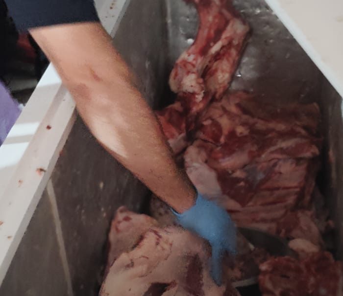 El segundo procedimiento se concretó en un comercio de Guaymallén, donde personal policial realizaba controles en carnicerías junto a equipos de Bromatología municipal. Durante la inspección en una carnicería y panadería, se verificaron múltiples irregularidades: productos vacunos y porcinos en mal estado, falta de frío, contaminación, salsas sin rotular, pastas en descomposición y serias falencias de higiene en los elementos de trabajo.