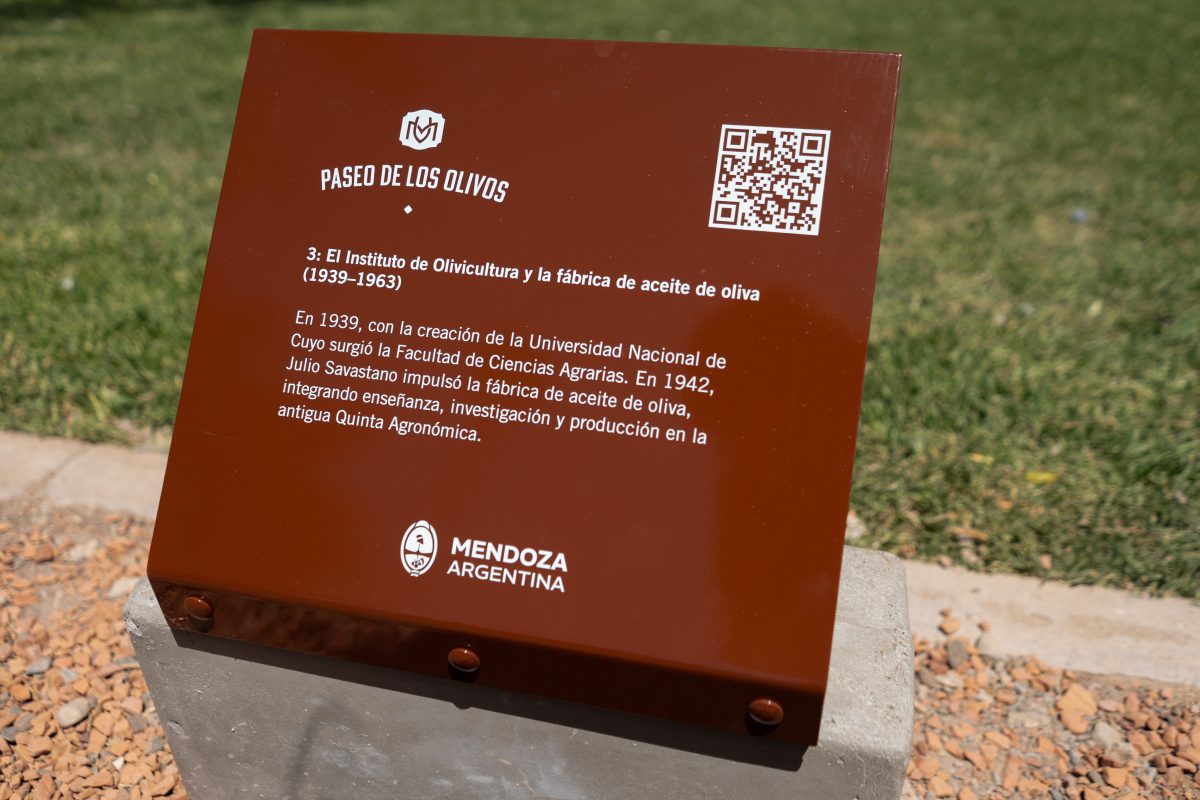El 26 de noviembre, en el marco del Día Internacional del Olivo, se inauguró el Paseo de los Olivos, que consiste en la puesta en valor de un espacio interpretativo ubicado en el corazón del Barrio Cívico. Este espacio aledaño a la fuente del Parque Cívico conserva 18 olivos centenarios, últimos testigos de esta especie, de la antigua Quinta Agronómica de Mendoza, un sitio clave para el origen de la agronomía y la vitivinicultura argentinas. Este paseo invita a mendocinos y visitantes a redescubrir un patrimonio vivo que conecta historia, paisaje y cultura: https://mendoza.tur.ar/paseo-de-los-olivos/