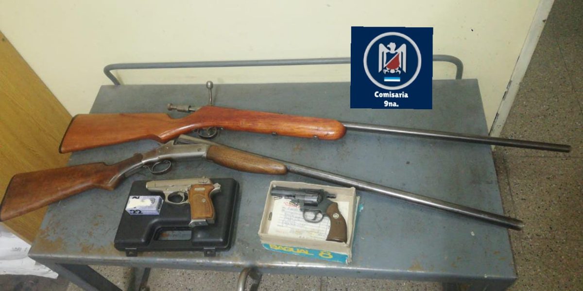 Con intervención de la Oficina Fiscal N° 2, se dispuso una medida en el inmueble que permitió el secuestro de una escopeta calibre 16, una carabina calibre 22, un revólver calibre 22 con seis cartuchos y una pistola calibre 22, elementos que quedaron a disposición de la Justicia.