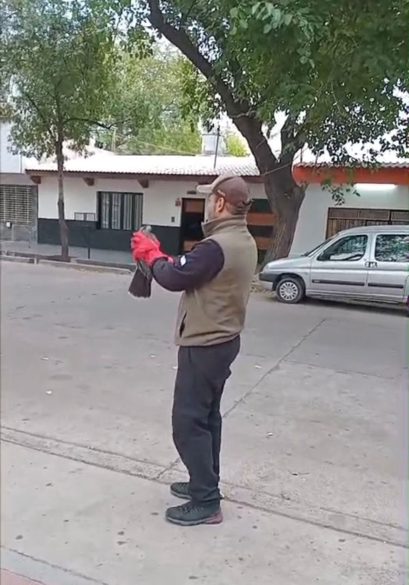 Tras evaluar el estado del ejemplar, se constató que se trataba de un macho adulto de gavilán mixto (Parabuteo unicinctus), una especie de ave rapaz que forma parte de la fauna silvestre protegida de Mendoza. El animal se encontraba en buen estado de salud, por lo que se procedió a su rescate seguro y posterior liberación en un entorno adecuado.