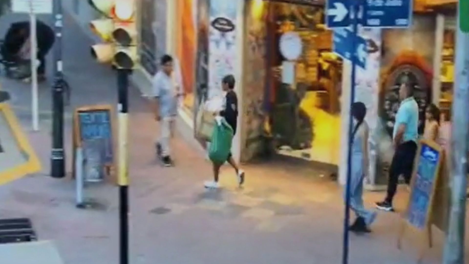 Según el parte oficial, las cámaras captaron al hombre en actitud sospechosa en la esquina de General Paz y 9 de Julio. Instantes después, se observó cómo se levantó y tomó una mochila que estaba colgada en la pared externa de un comercio gastronómico. Tras concretar la sustracción, el hombre guardó el elemento en una bolsa verde y se retiró por la calle 9 de Julio hacia norte.
