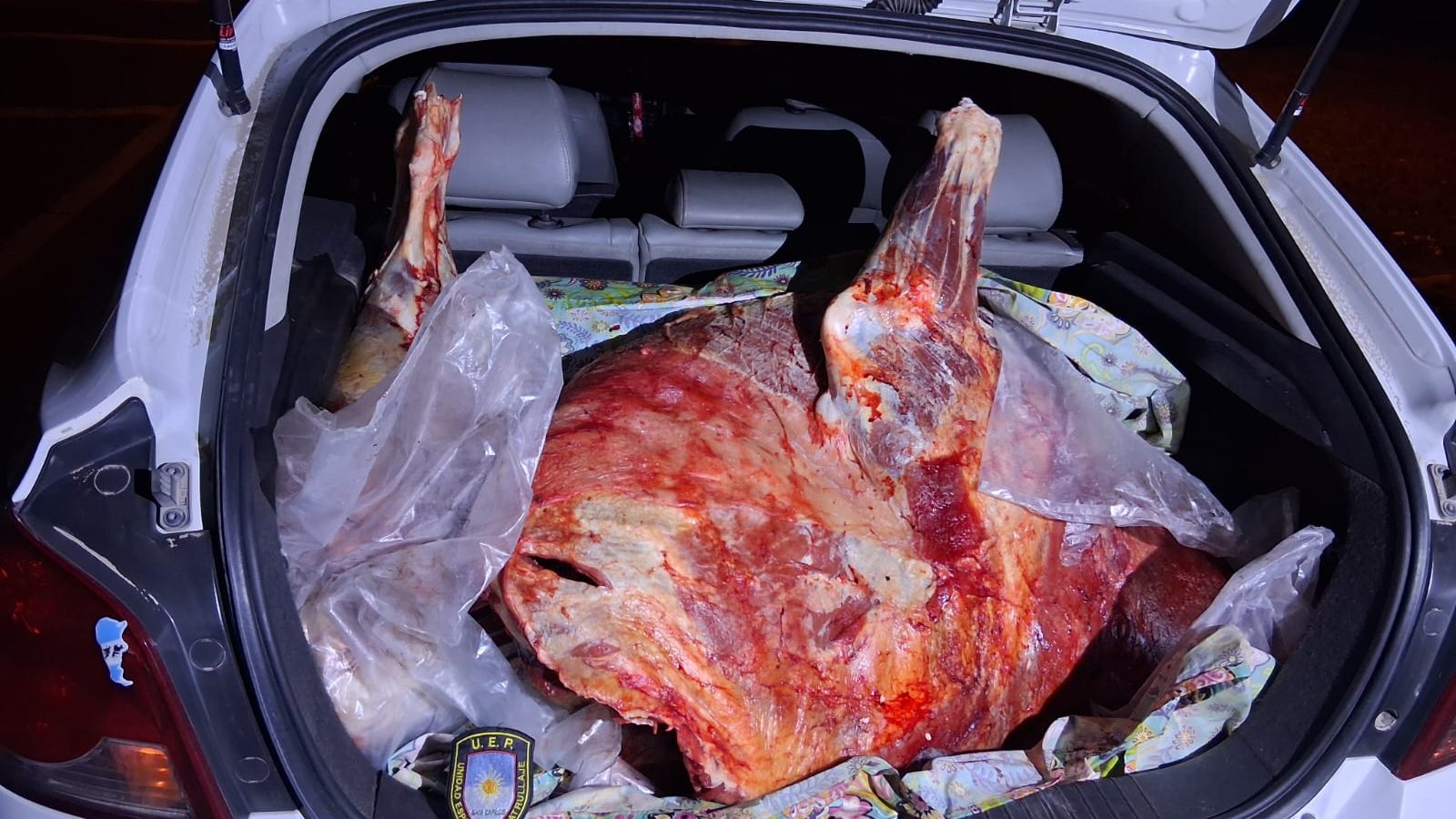 Al inspeccionar el baúl del rodado, constataron la presencia de dos patas de vacuno. Consultado sobre la procedencia de la carne, el conductor —un hombre de 68 años— manifestó que la transportaba desde un puesto, sin poder aportar datos concretos sobre su origen.