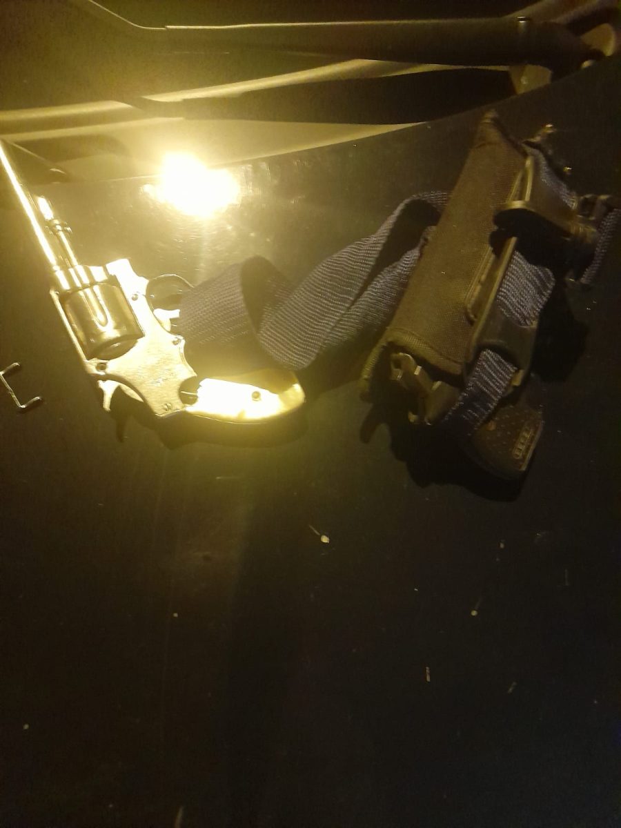 En simultáneo, otra movilidad de la misma delegación en Santa Cruz interceptó un remís Toyota Corolla, cuyo pasajero, de 22 años, estaba vinculado al hecho anterior. Durante la requisa se produjo un forcejeo, que finalizó con la reducción del joven. Se le secuestró un arma de fuego tipo revólver calibre 32 y en una funda negra, una pistola calibre 380 con una munición en recámara y dos cartuchos en el cargador. Además, se incautaron $20.000 en efectivo y 15 envoltorios de nailon con cocaína.