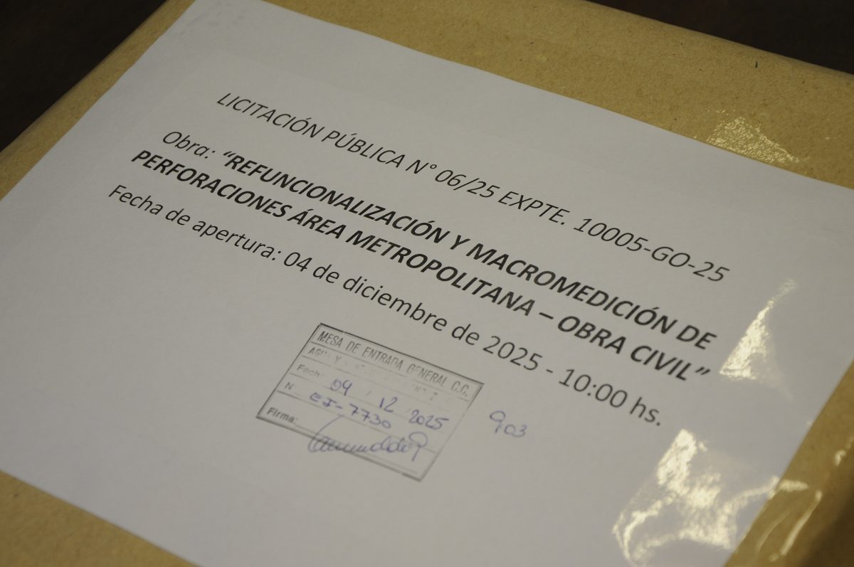 Por su parte, la obra de refuncionalización y macromedición de perforaciones del Área Metropolitana-Obra Civil, a cargo de Aysam, tiene un presupuesto de $2.041.183.560,46. Se recibieron dos propuestas, de las firmas Apolo Sur SA y Corporación del Sur SA.