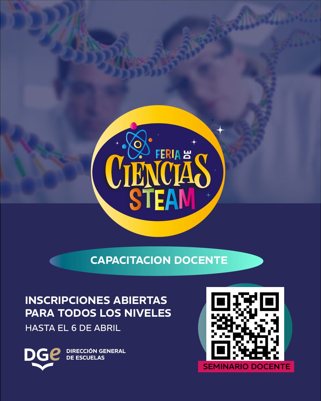 Hasta el próximo lunes 6 de abril, docentes mendocinos de todos los niveles y modalidades de escuelas de la provincia podrán inscribirse en la capacitación docente sobre Aprendizaje Basado en Proyectos (ABP) y Feria de Ciencias, en el marco del comienzo de las actividades de la Feria Nacional de Educación en Ciencias, Arte, Matemática y Tecnología (STEAM) 2026.