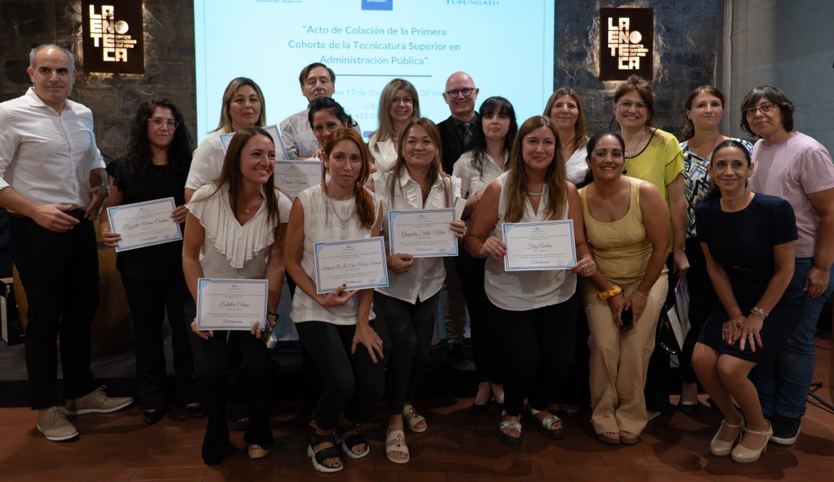 Este miércoles, en La Enoteca, de Ciudad de Mendoza, se desarrolló el acto de colación de la primera cohorte de la Tecnicatura Superior en Administración Pública, propuesta educativa a distancia destinada al personal temporario y permanente del Gobierno provincial en general, dado que se tiene a estudiantes que se encuentran inscriptos en la carrera que residen en toda la provincia.