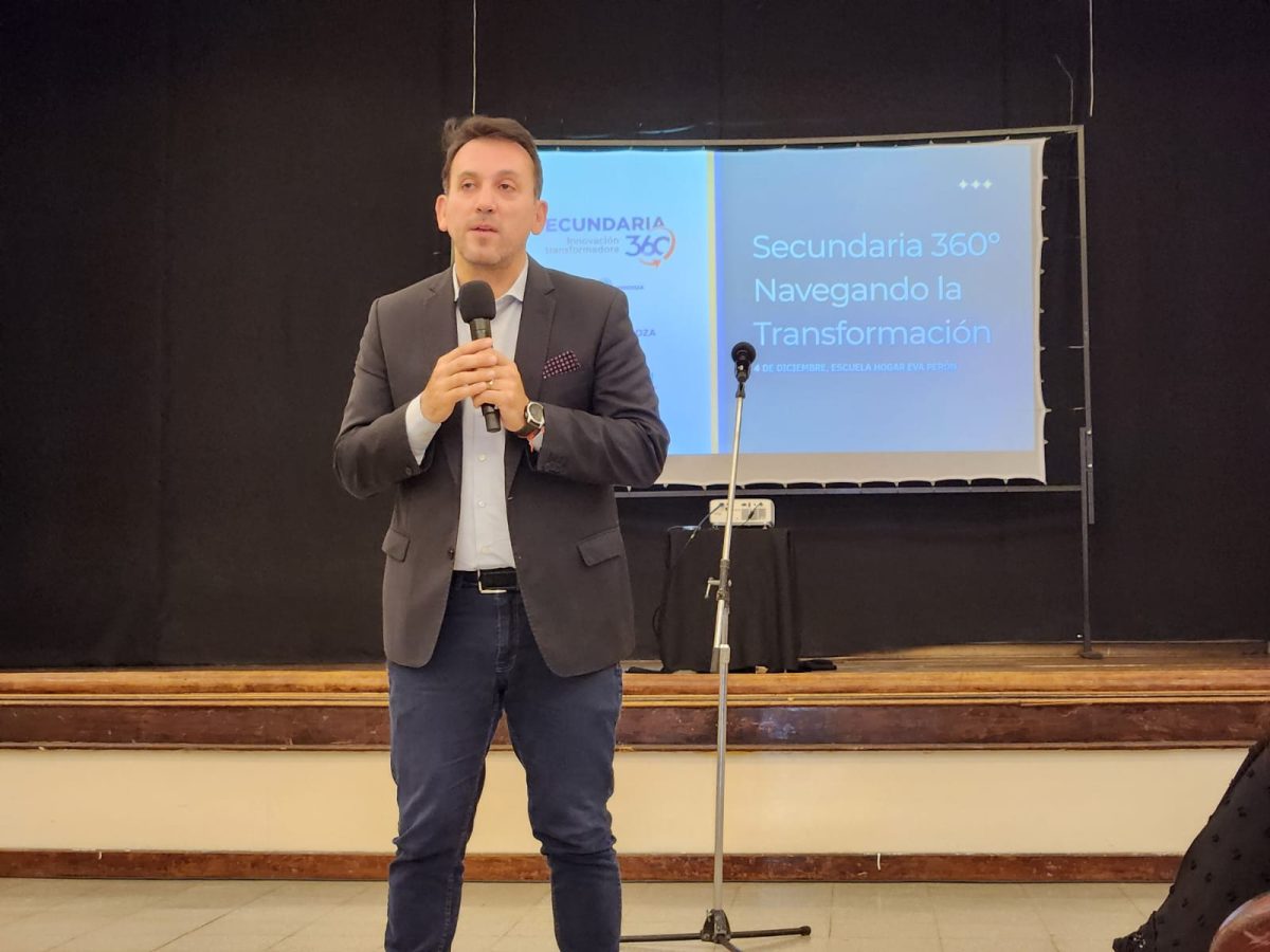 Directores de 50 escuelas que forman parte del programa educativo denominado Secundaria 360 participaron este jueves en el cierre de esta iniciativa que se realizó en la Escuela Eva Perón de la Ciudad de Mendoza y que contó con la presencia del ministro de Educación, Cultura, Infancias y DGE, Tadeo García Zalazar, y directores de línea.