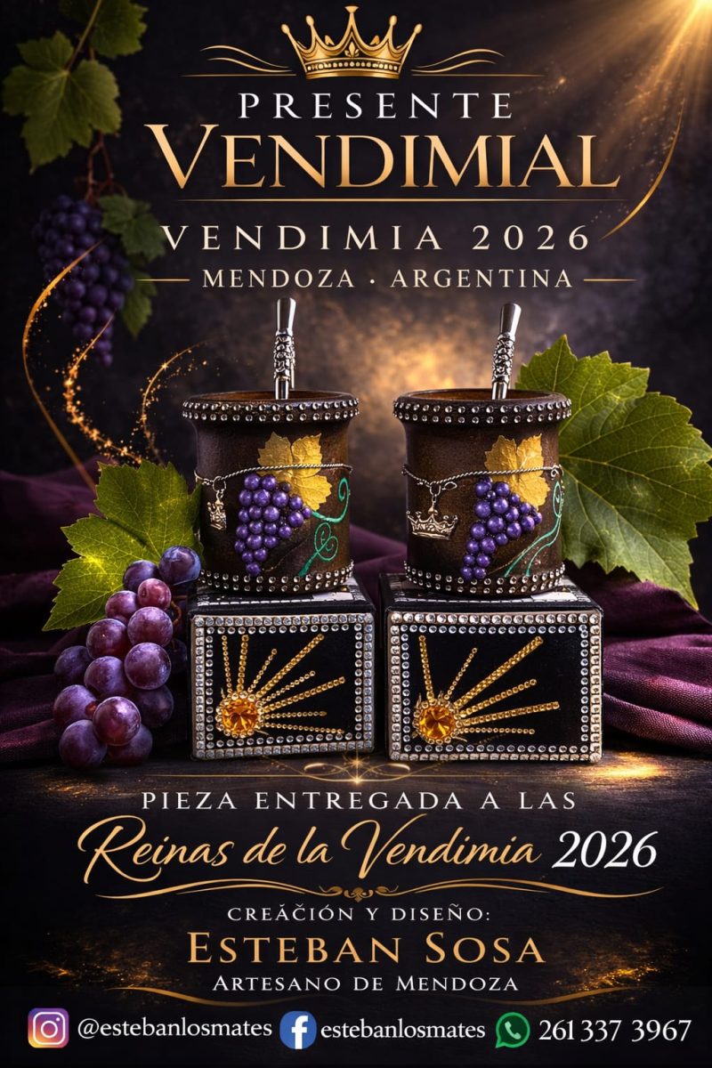 Además, otros emprendimientos locales participaron aportando valor simbólico y cultural al evento, como Aripao Accesorios, con la elaboración de prendedores artesanales, y Esteban – Los Mates, que realizó mates artesanales obsequiados a la Reina y Virreina de la Vendimia 2025.