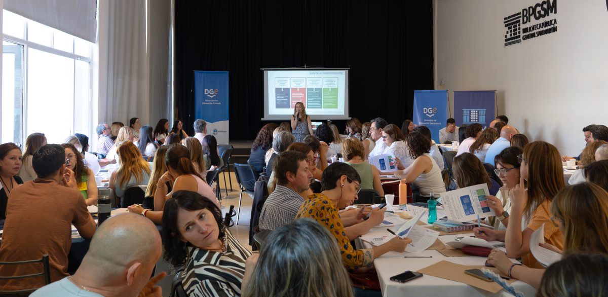 La Dirección General de Escuelas organizó este jueves en la biblioteca pública General San Martín de la ciudad, una jornada de trabajo con directores de 50 escuelas secundarias que participan del programa Red de escuelas secundarias innovadoras: un camino para la transformación, iniciativa que promueve el trabajo en red la sociabilización de las experiencias educativas y la construcción de estrategias pedagógicas.