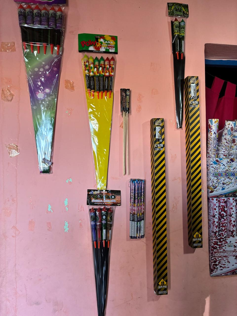 Además, se incautaron nueve teléfonos celulares, documentación vinculada a la causa —entre ella, listas de precios, facturas y alias para depósitos de dinero—, cinco formularios y talonarios, dos cuadernos, cinco banderas con publicidad de pirotecnia, una notebook, una etiquetadora y una contadora. También se secuestraron dos cajas de cartón que contenían 14.096.390 pesos en efectivo.