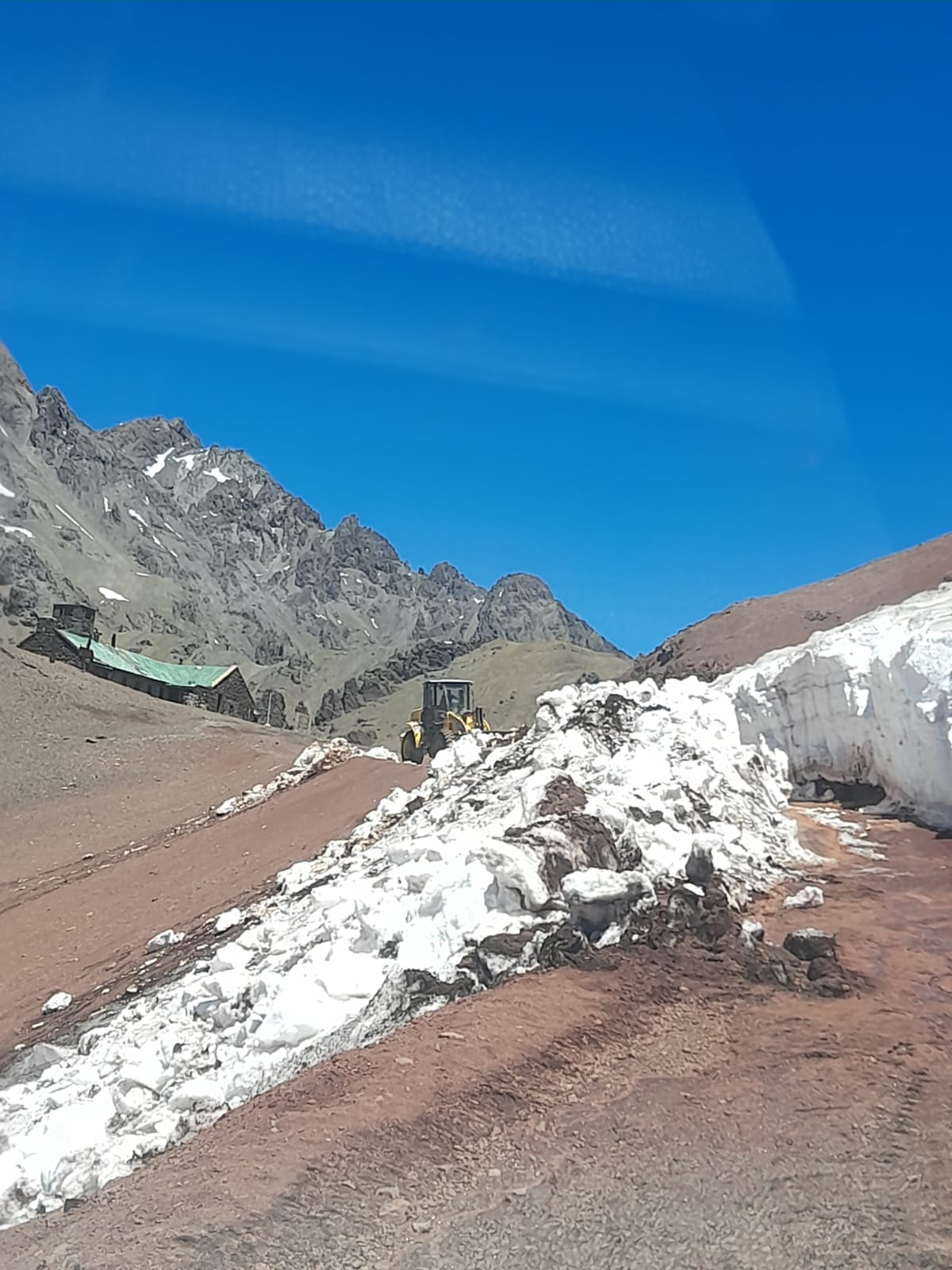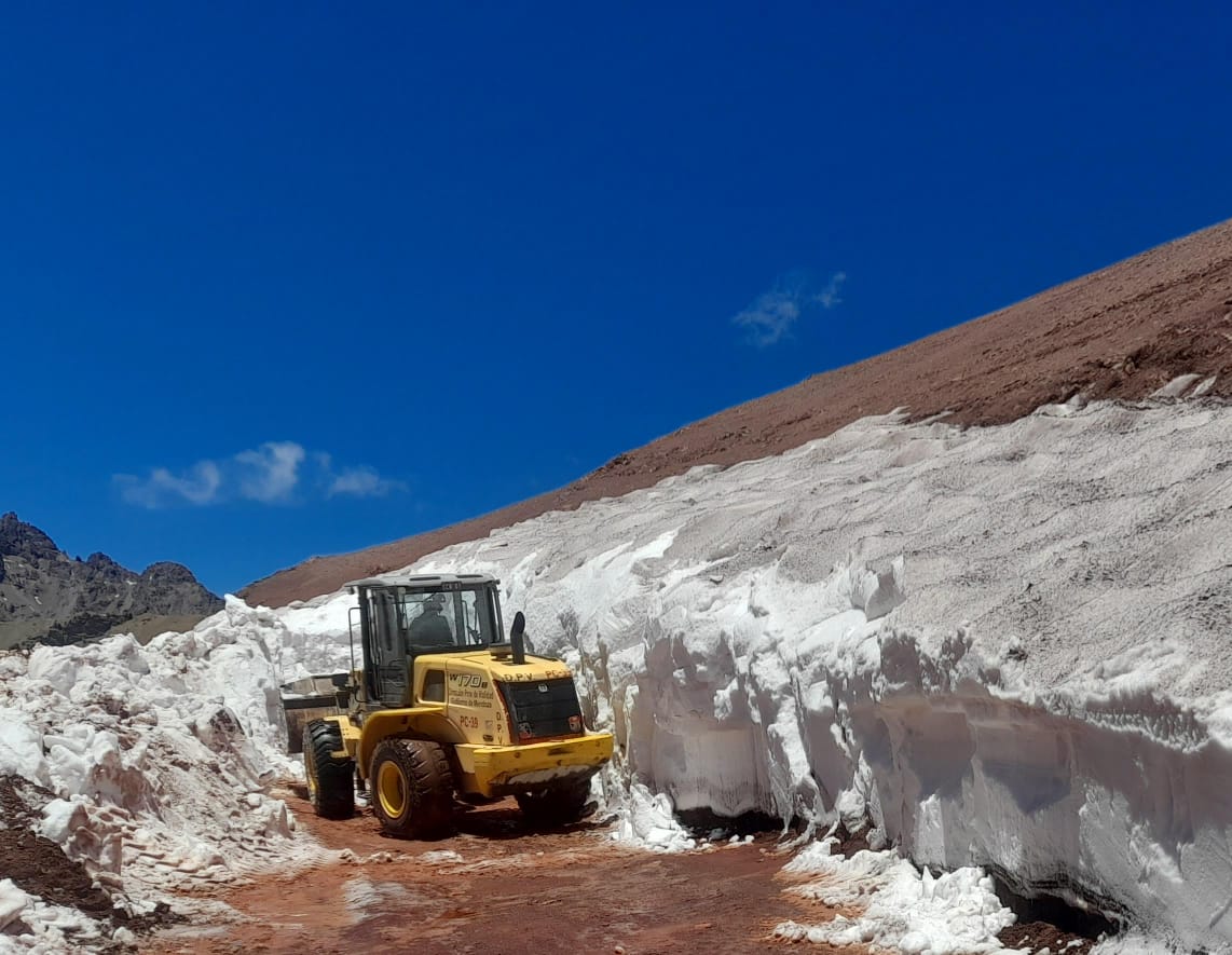 Recién cuando el deshielo está muy avanzado y la nieve ha escurrido casi en su totalidad, los operarios de Vialidad Mendoza, con la colaboración de la Dirección Nacional de Vialidad, ingresan al circuito para quitar la nieve restante y abrirse paso entre los grandes bloques de hielo aún indemnes.